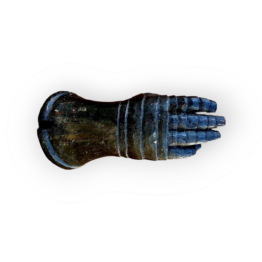 A Rare Life-Size Early 17th Century Antique Carved Wood Sculpture of an Armoured Glove or Gauntlet