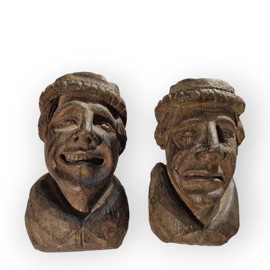 A Fine Pair of Late 15th-Century / Early 16th-Century English Antique Carved Oak Corbels in the Form of Characterful Heads