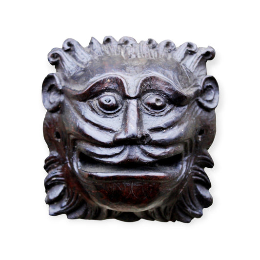 A 16th-Century Antique Carved Walnut Panel / Appliqué In The Form Of a Stylised Lion's Head