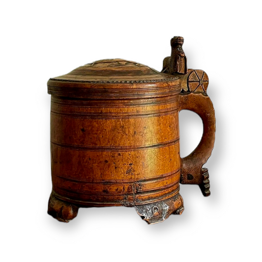 Large 18th Century Scandinavian Antique Treen Peg Tankard / Birchwood Tankard