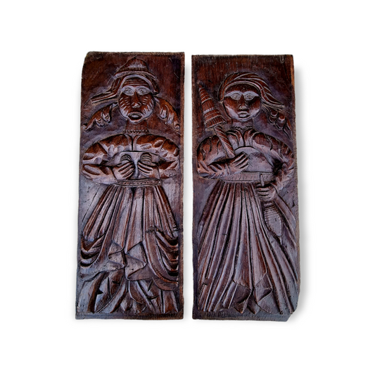 Pair of Late 16th Century Flemish Antique Carved Oak Figural Folk Art Panels