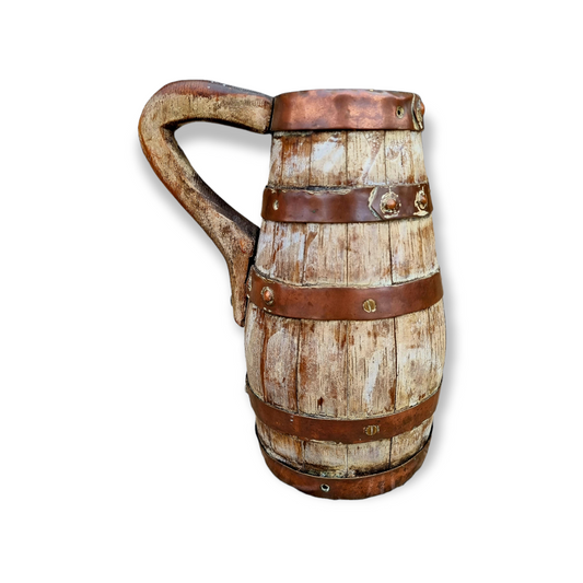 19th Century Irish Antique Coopered Oak Tankard In Original Paint