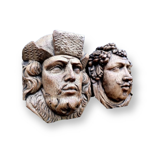 Pair of Early 17th Century Antique Carved Oak Panels in the Form of Male Heads