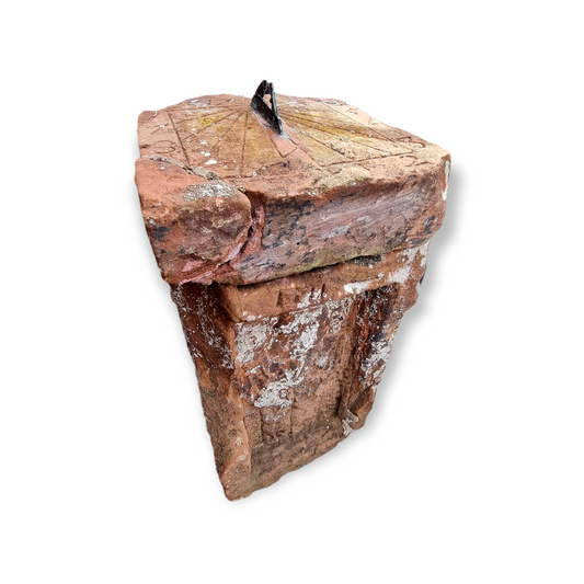 PRICE ON APPLICATION - Early 18th Century English Antique Sandstone Sundial Dated "1710" Supported On An Associated Base of Earlier Date, Thought to be an original Roman Altar Stone with a Naïvely Carved Figure of a Man