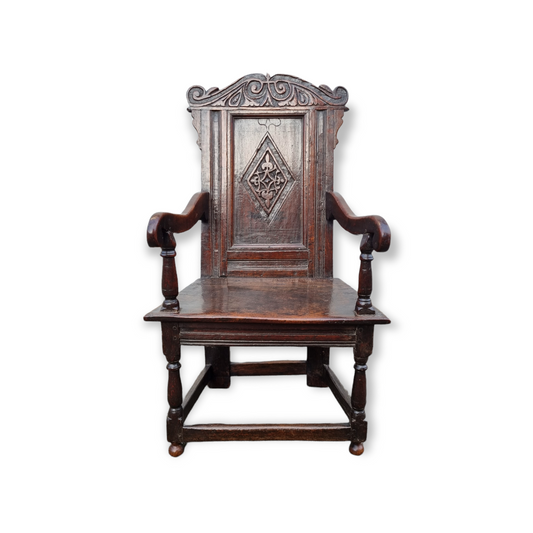 Early 17th Century English Antique Oak Wainscot Armchair, Circa 1620