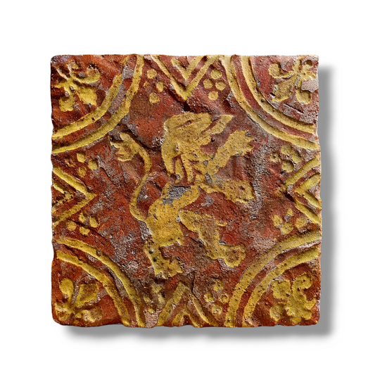 Medieval Style, 19th Century-Made, Antique Encaustic Floor Tile With Rampant Lion