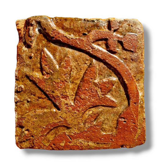 14thC / Medieval Period English Antique Encaustic Floor Tile Depicting Vines And Foliage