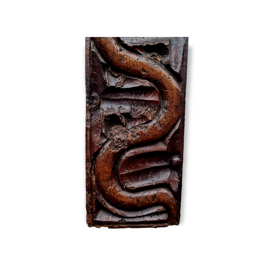 Late 16th Century / Early 17th Century Antique Carved Oak Panel Depicting A Serpent / Snake