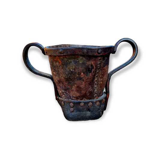 18th Century English Antique Leather Fire Bucket In The Form Of A Loving Cup