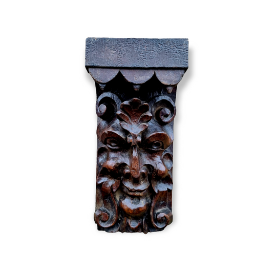 Early 17th Century English Antique Carved Oak Panel / Corbel Depicting a Green Man
