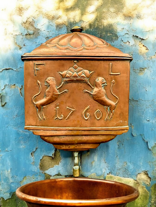 Mid 18th-Century Antique Copper Water Cistern Dated "1760"