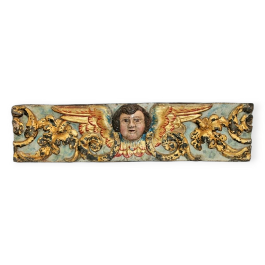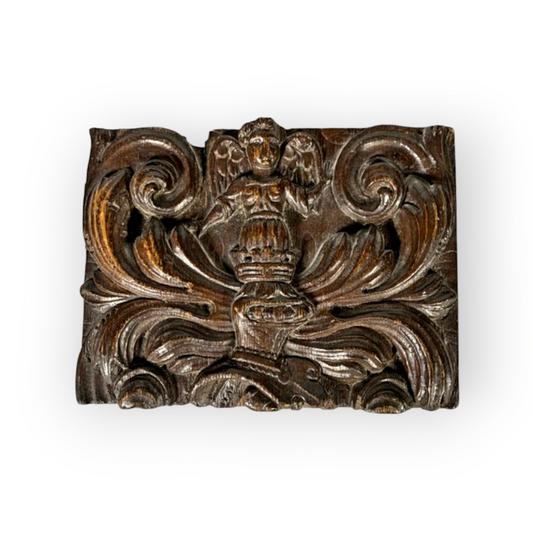 Early 18th-Century Baroque Period Spanish Antique Carved Wood Angel / Cherub Panel