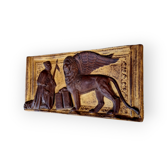 Early 19th-Century Grand Tour Bas-Relief Carved Wood Panel of The Doge of Venice and Lion of Saint Mark