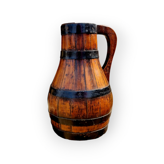 18th-Century Antique Oak Pitcher With Iron Bindings