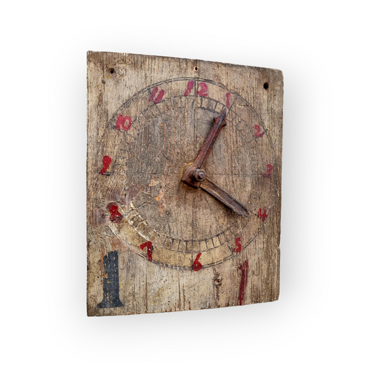 Late 19th Century English Antique Child's Educational Toy Clock Face / Teaching Aid Originating From Skeyton Primary School, Skeyton, Norfolk