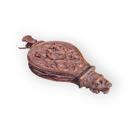 A Pair of 18th-Century Antique Carved Walnut Belllows In Attic Found Condition