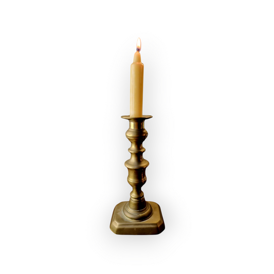 Single 19th-Century English Antique Brass Beehive Candlestick