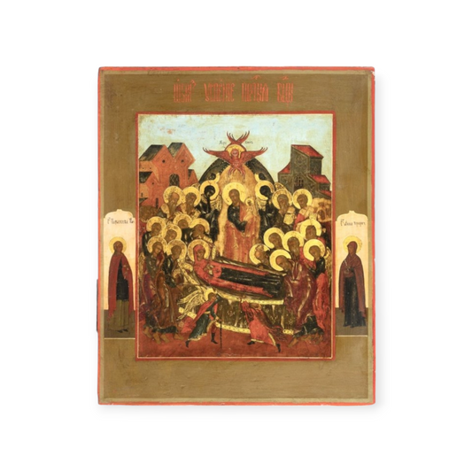 Late 18th-Century Russian Orthodox Antique Icon Depicting The Dormition Of The Virgin