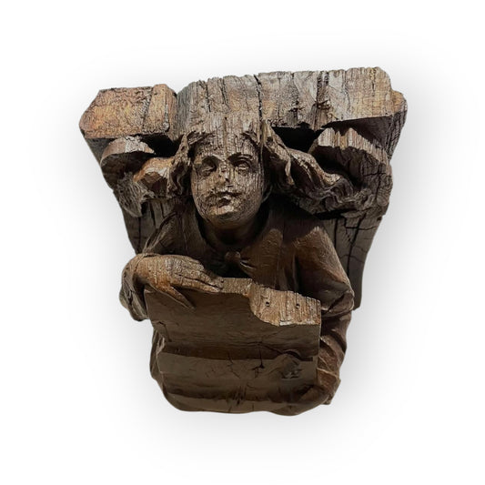 A 15th-Century English Antique Carved Oak Corbel in the Form of a Winged Angel