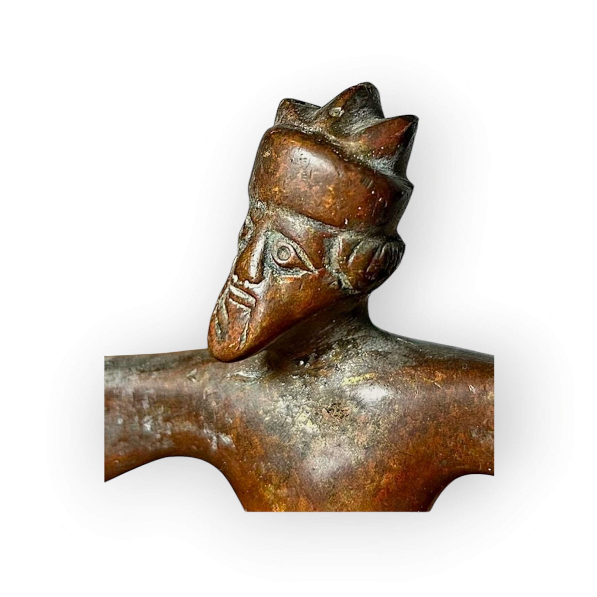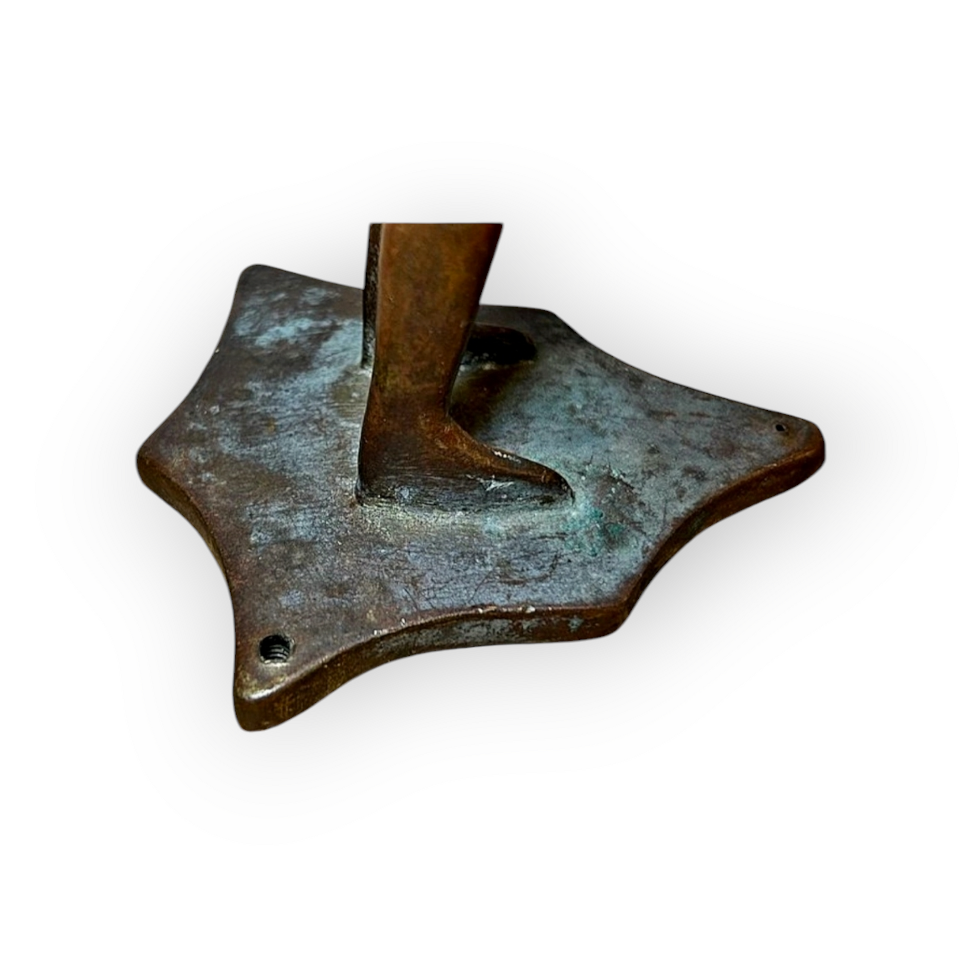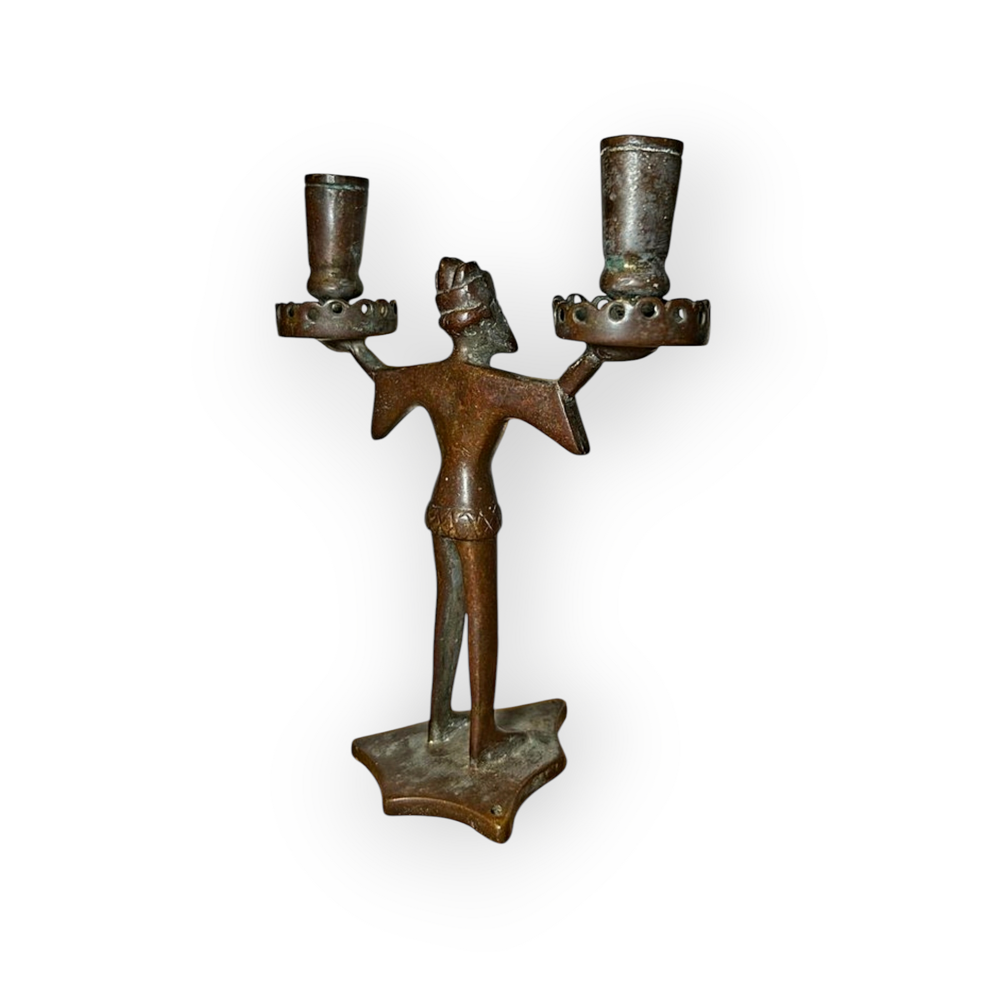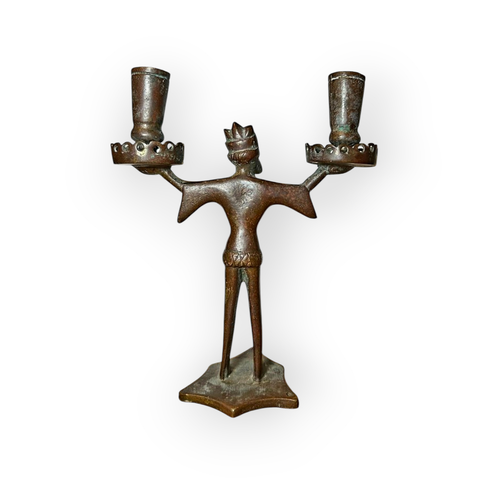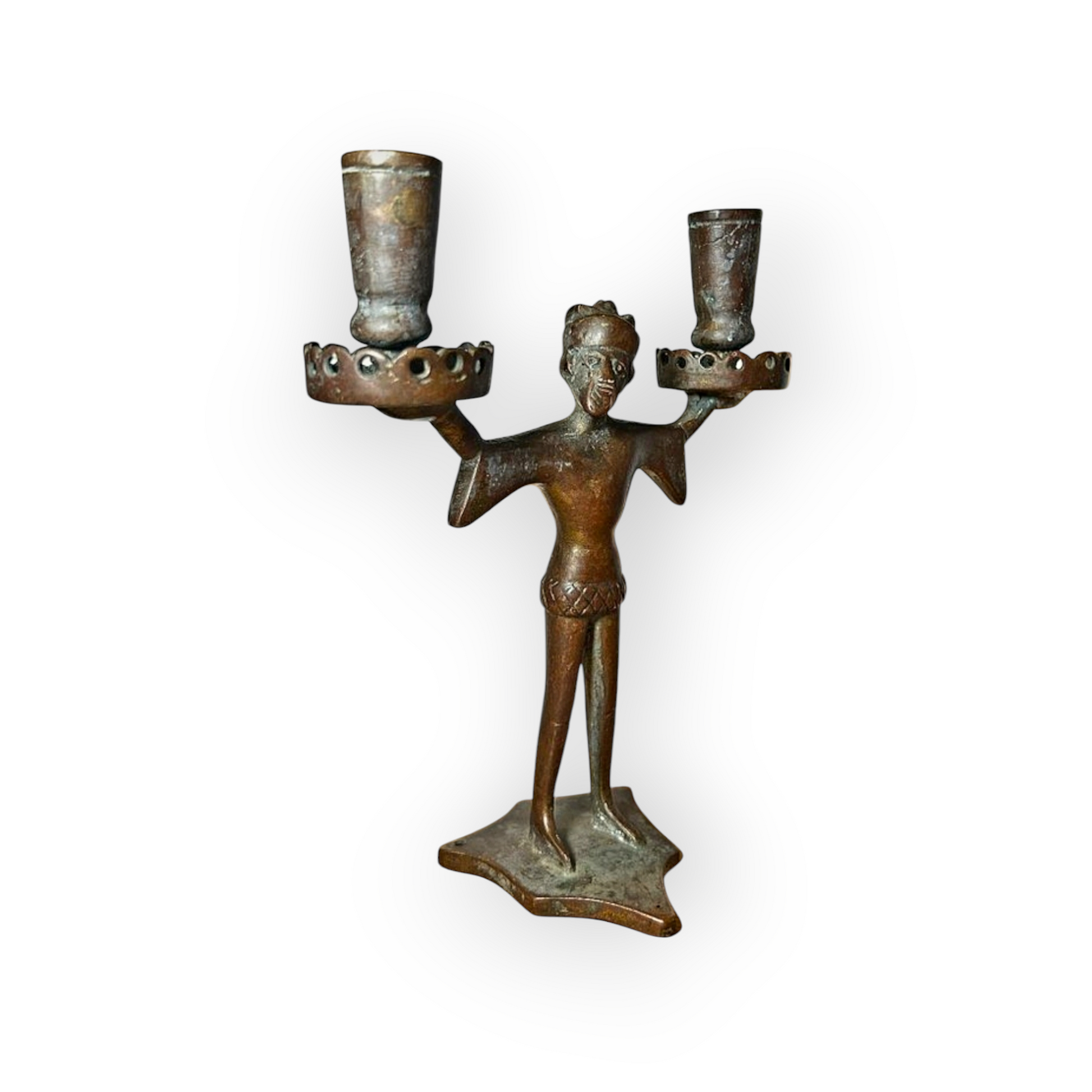 15th Century / Late Medieval Period German Antique Bronze "Bearded Man" Two Branch Candleholder / Candelabrum