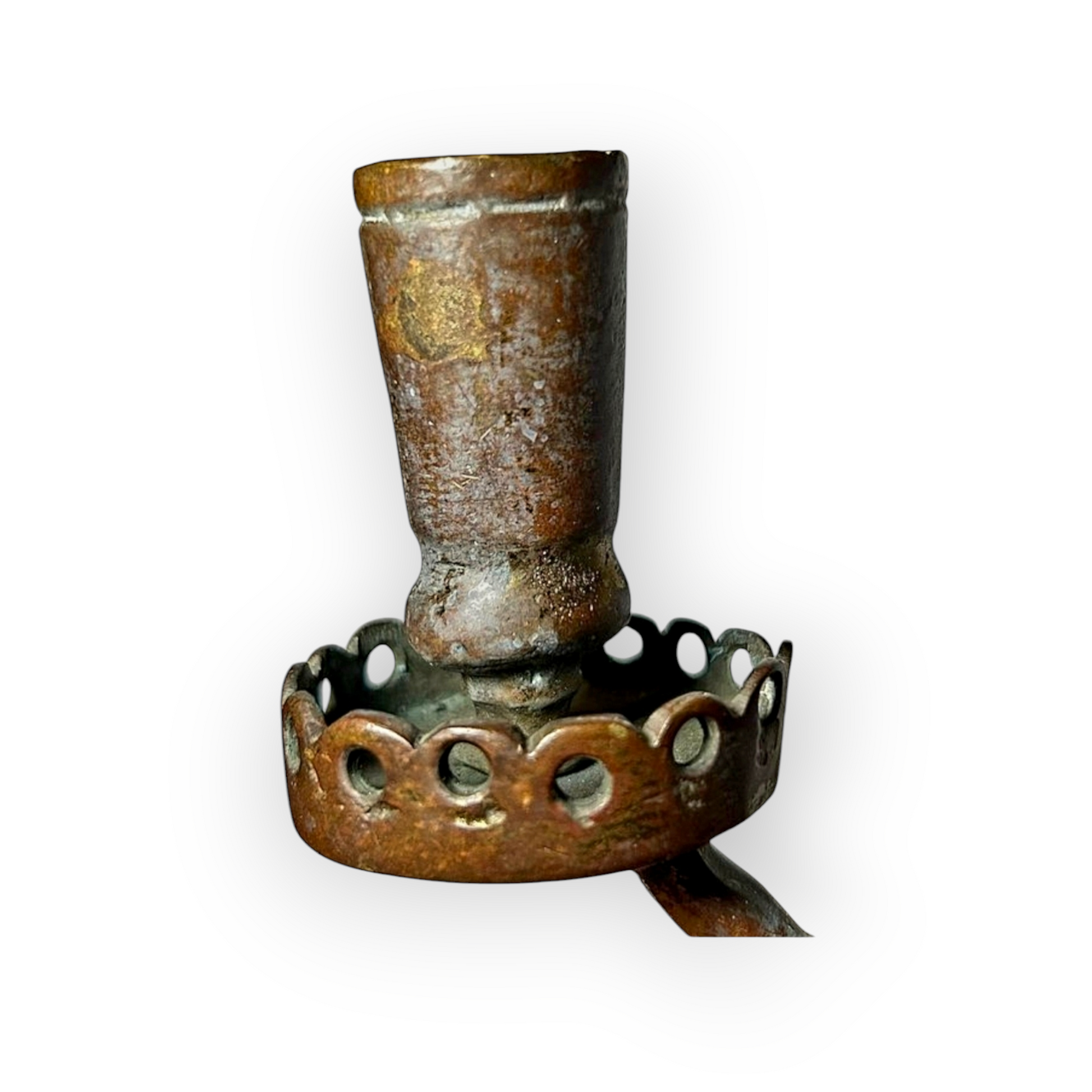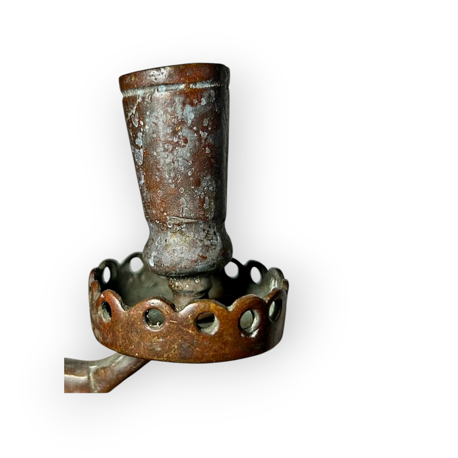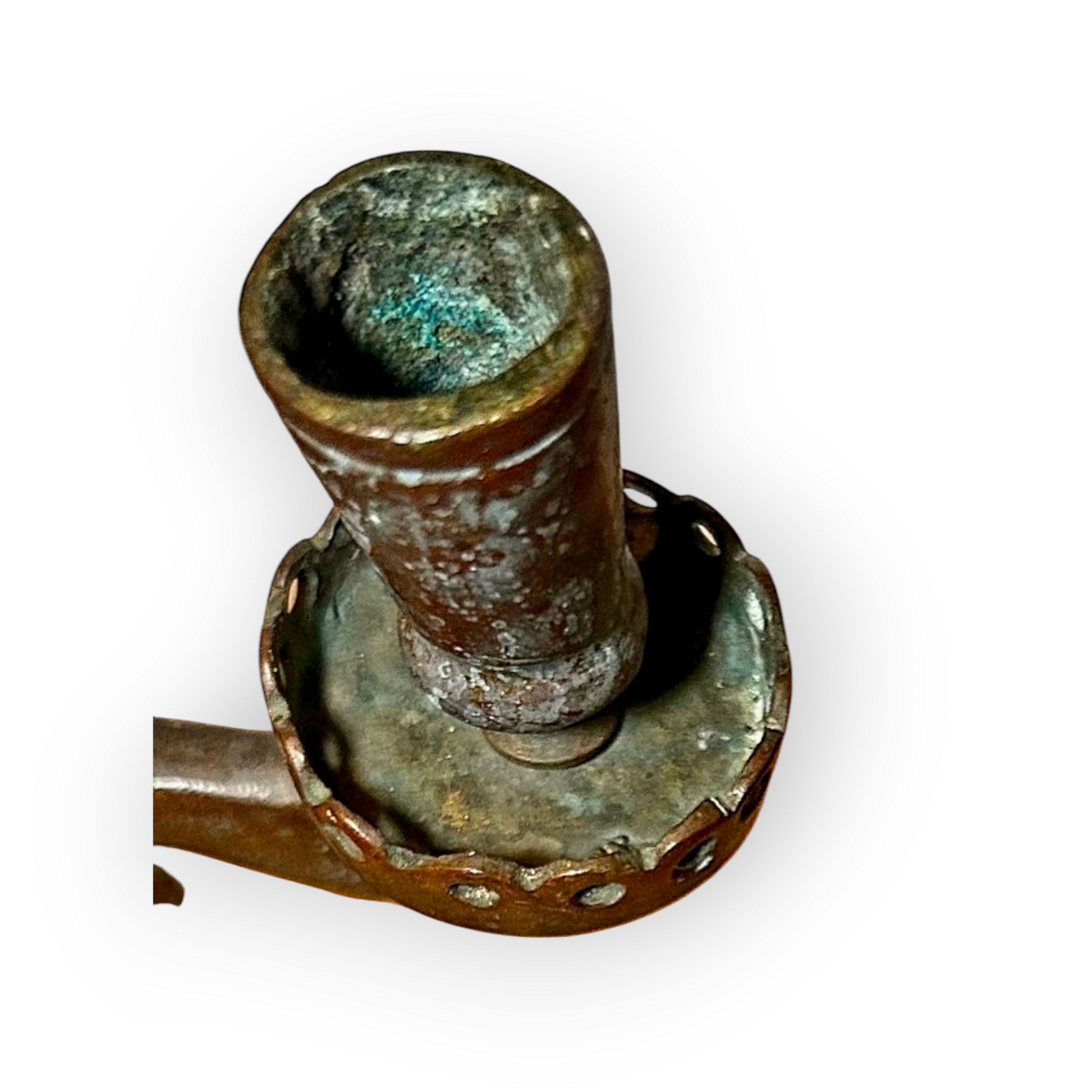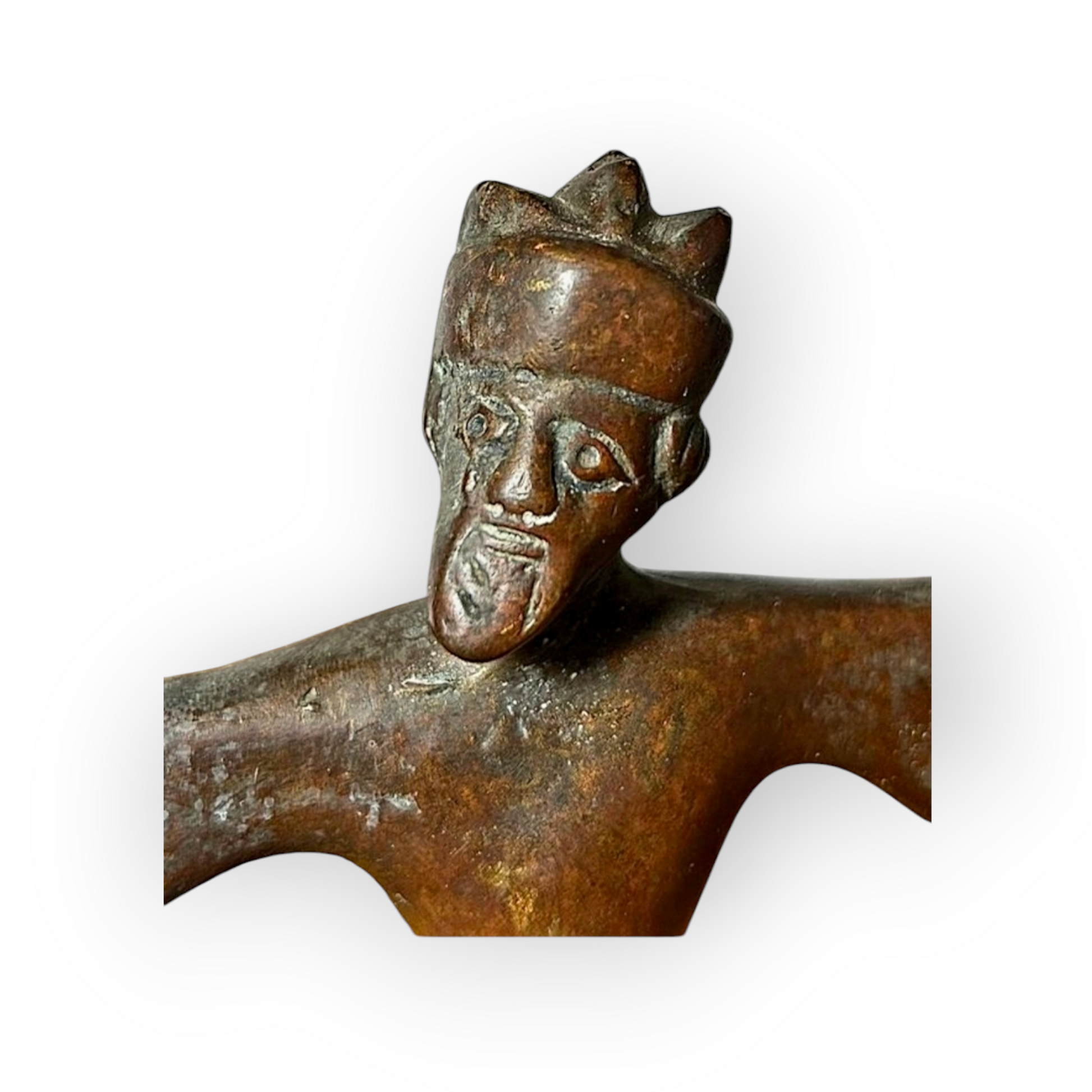15th Century / Late Medieval Period German Antique Bronze "Bearded Man" Two Branch Candleholder / Candelabrum