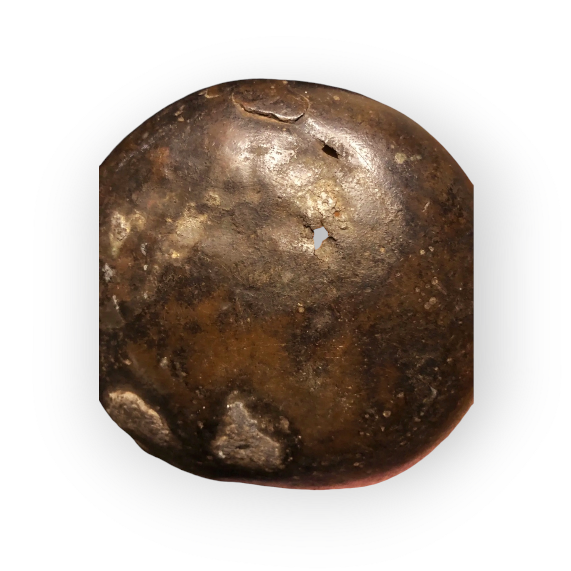Condition— This jug was excavated historically. The metal shows surface wear and thinning, with a couple of minor perforations and an old lead solder repair. Please refer to the images. A detailed condition report is available upon request.