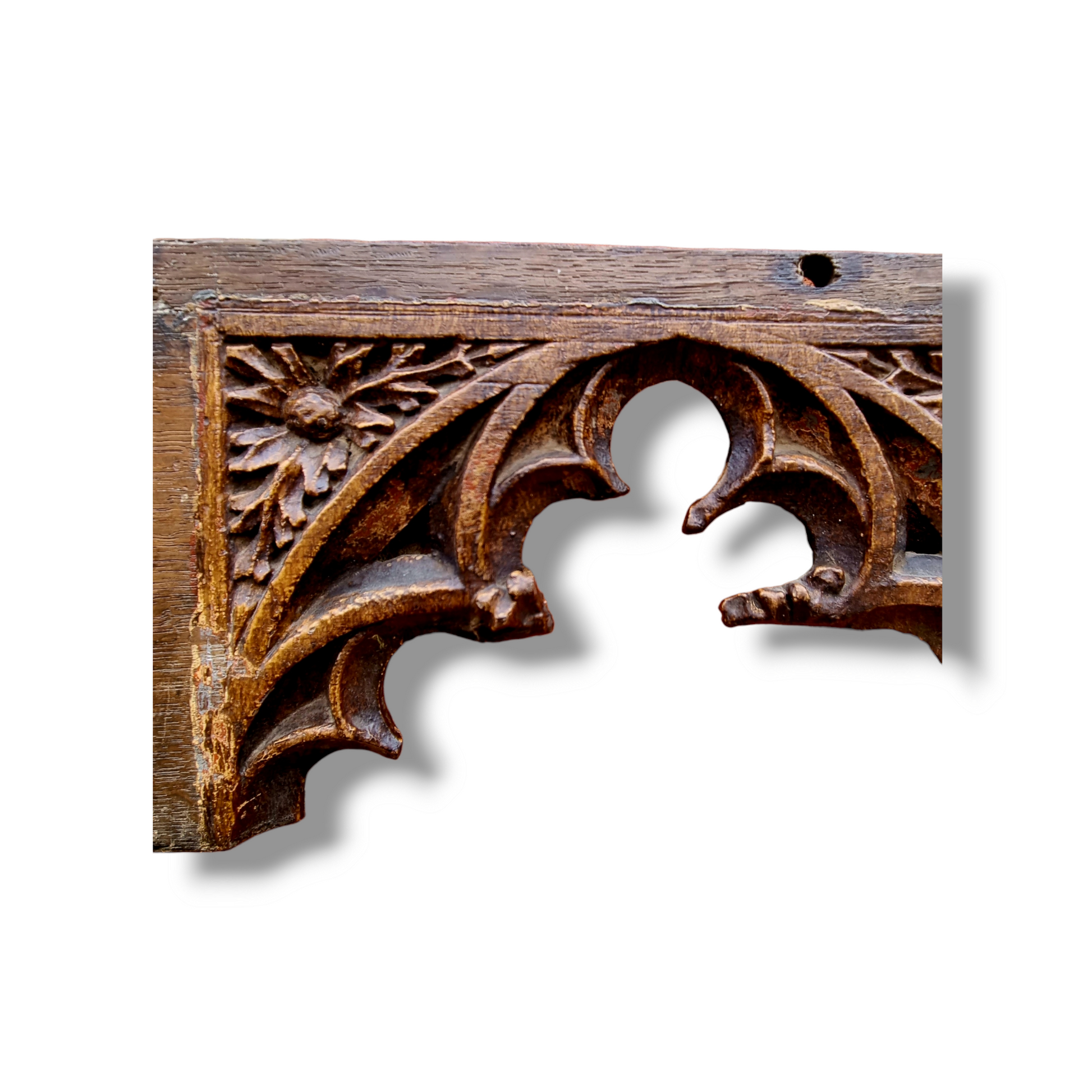 A 15thC antique carved oak Gothic tracery head fragment, circa 1480.