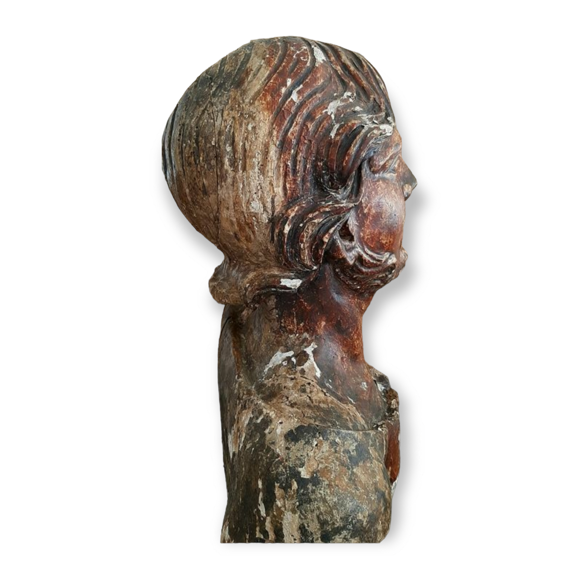 16th Century Italian Life-Size Antique Carved Lime Wood Bust Of A Saint