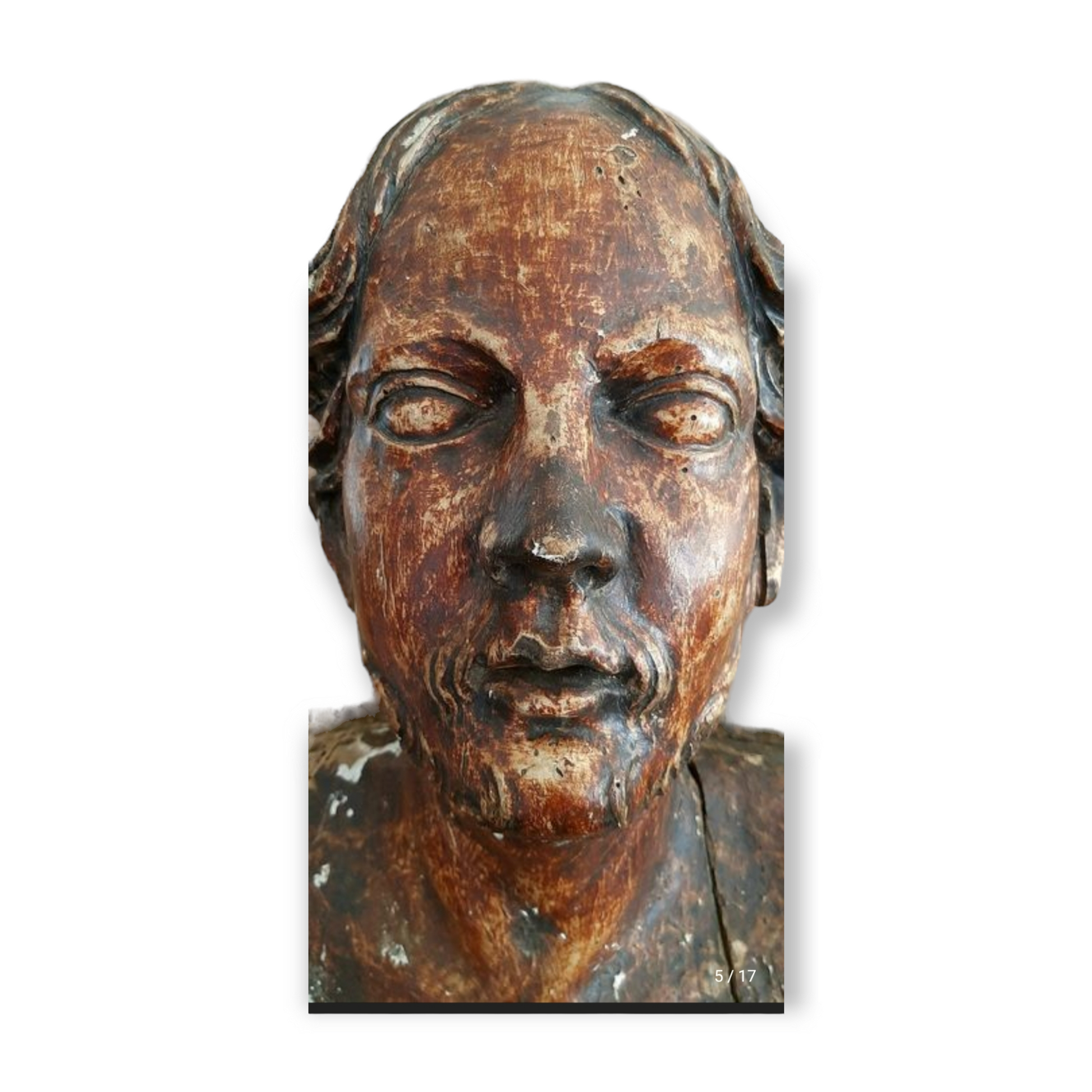 A 16th-century carved lime wood bust of a male Saint.