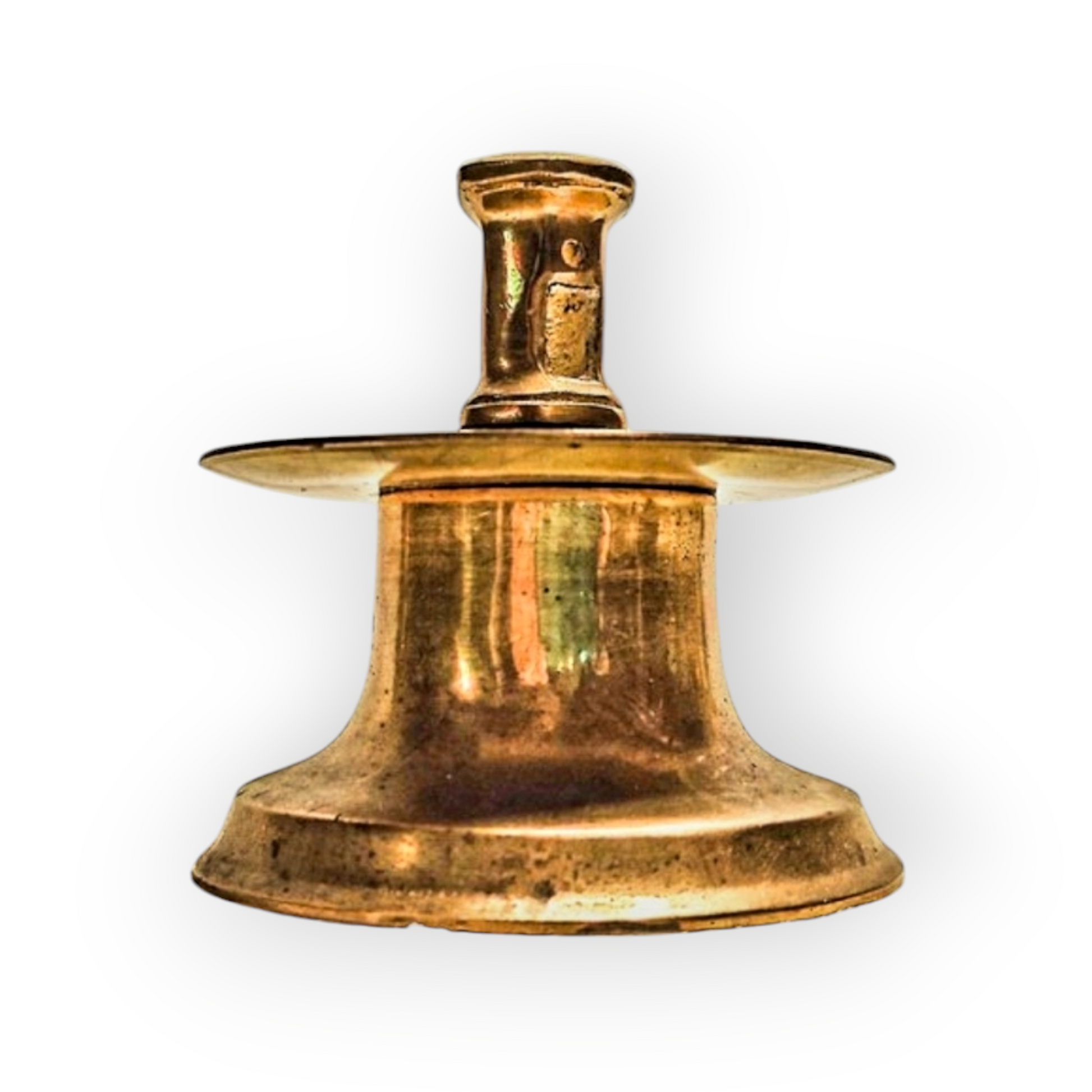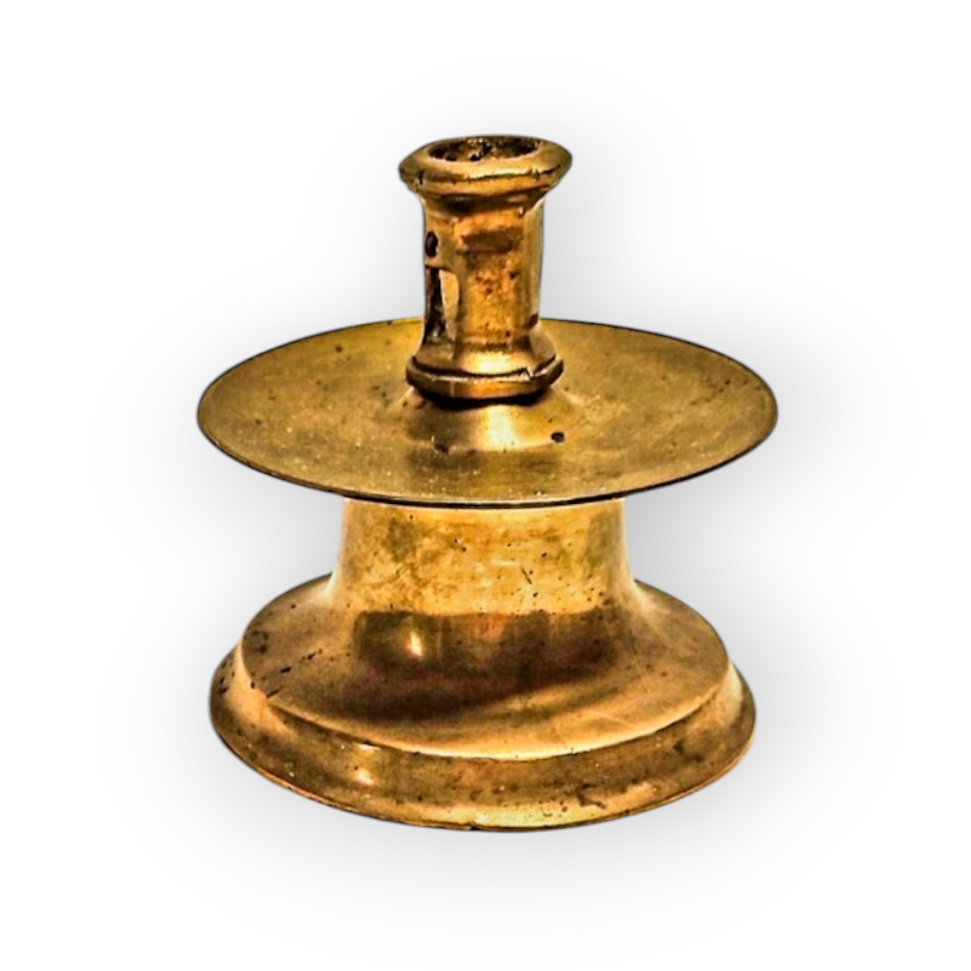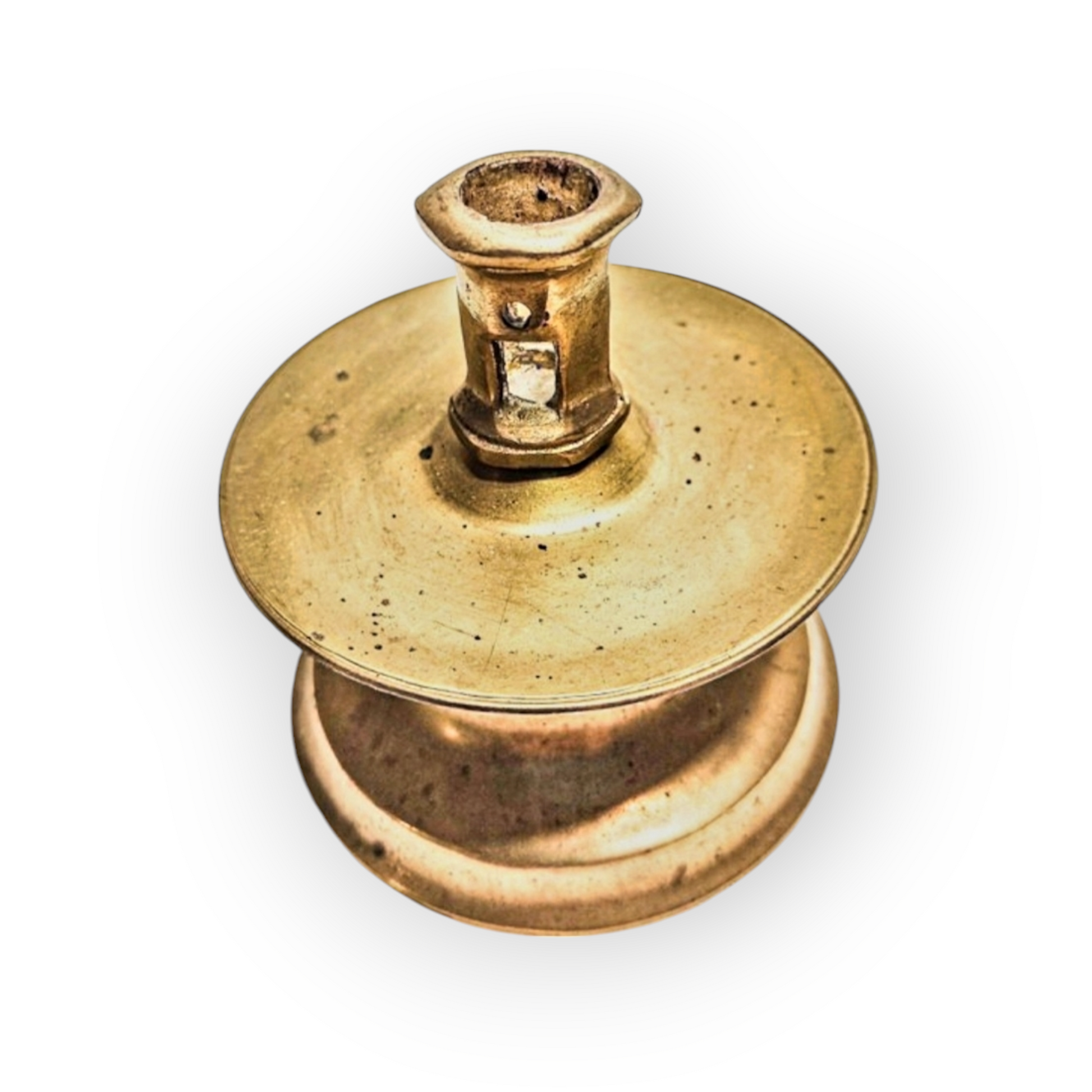 16th-Century Spanish Antique Brass Capstan Candlestick / Bell-Base Candlestick