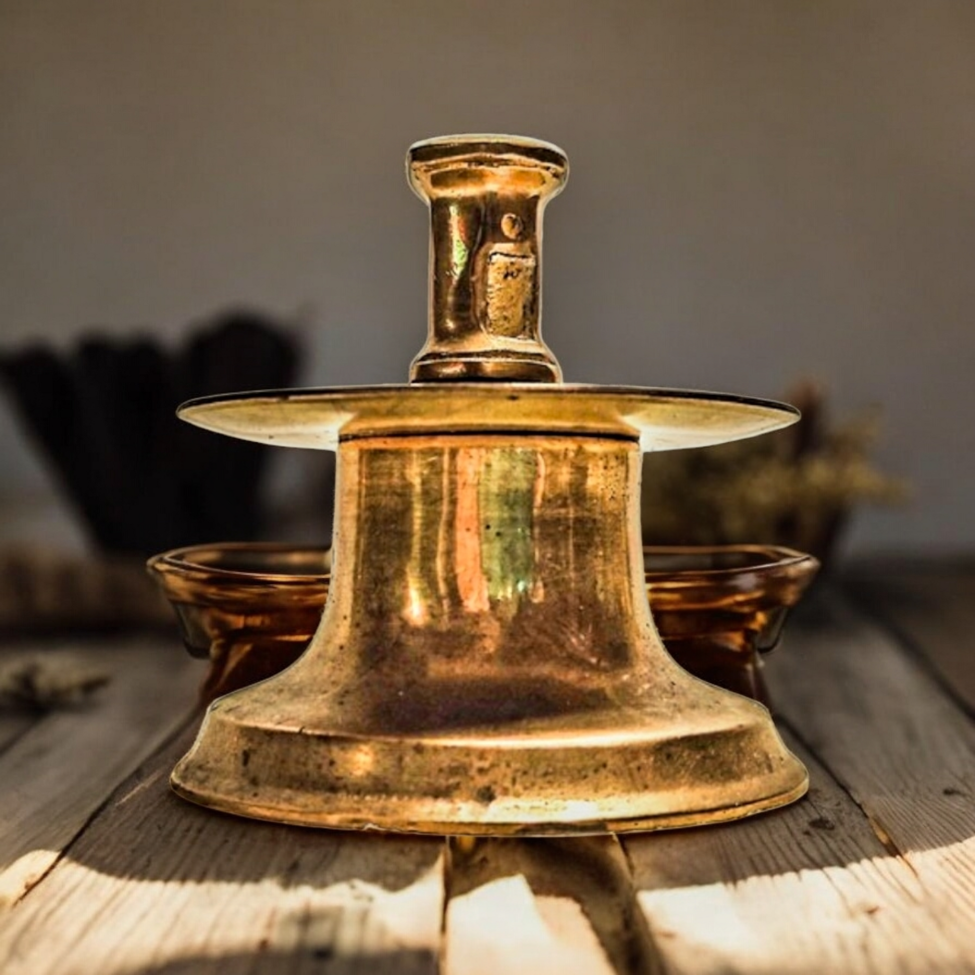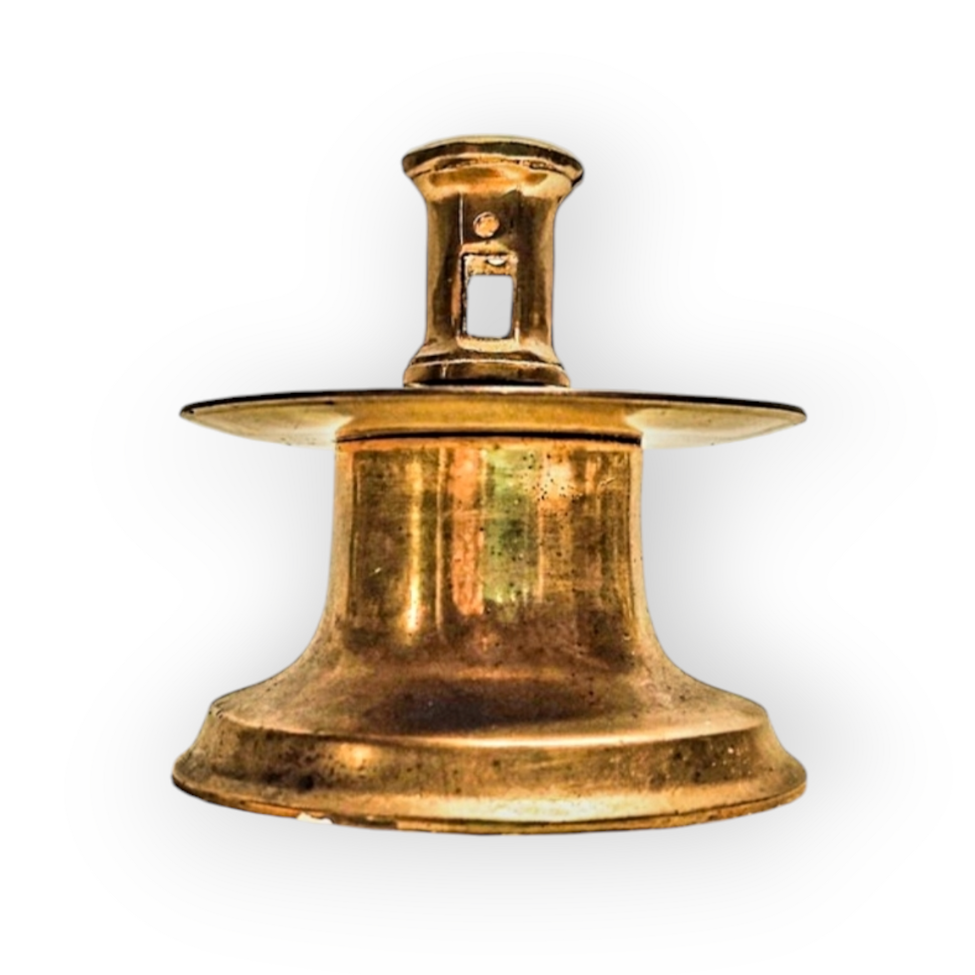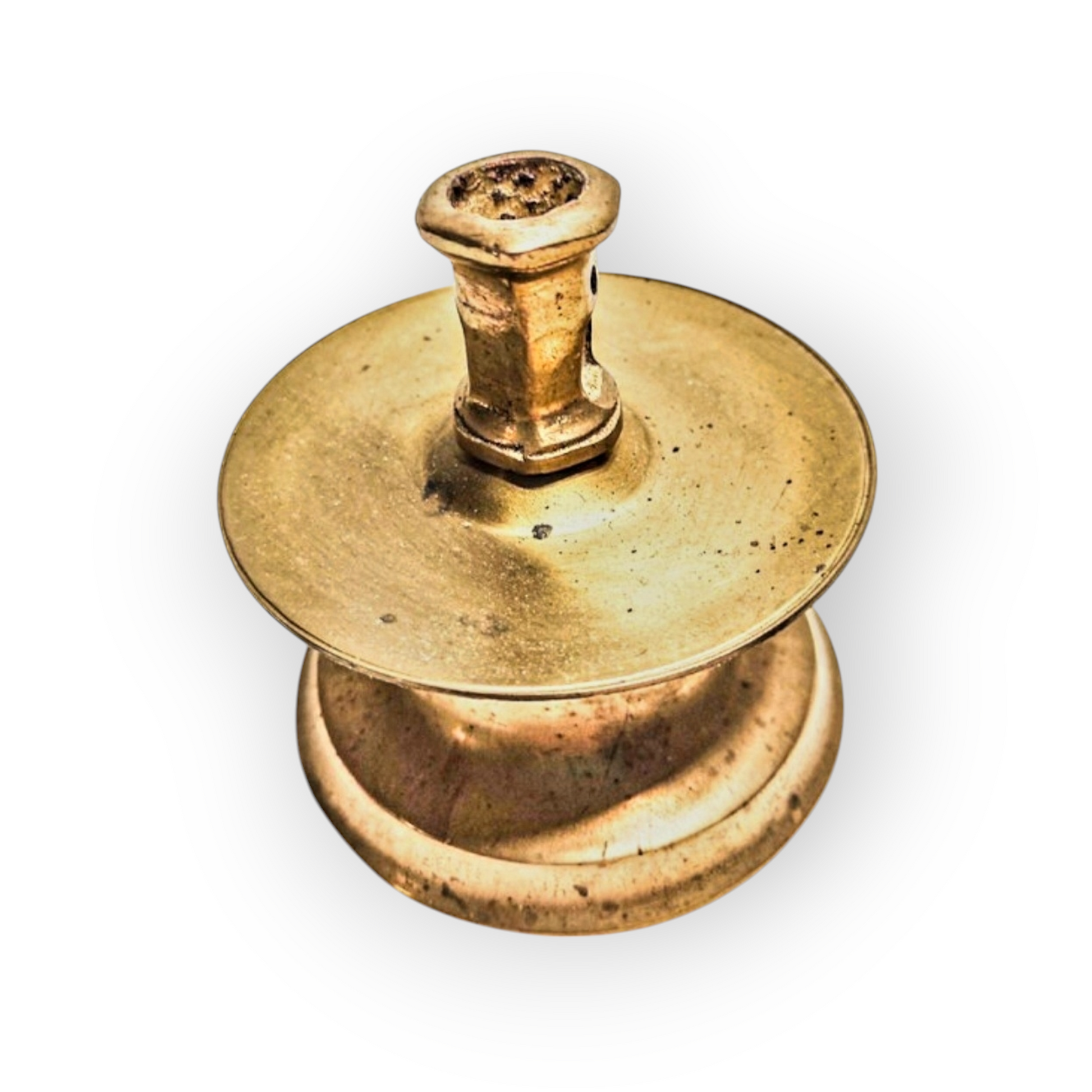 16th-Century Spanish Antique Brass Capstan Candlestick / Bell-Base Candlestick