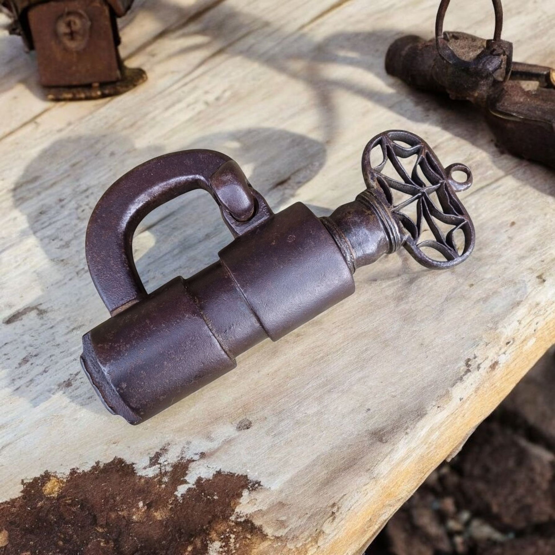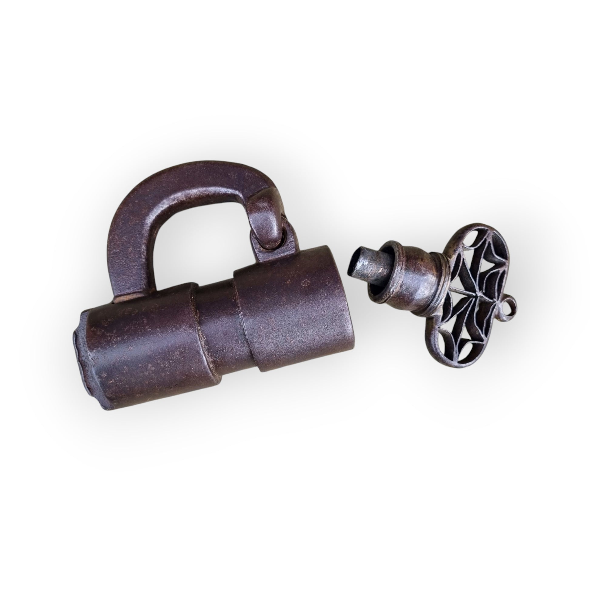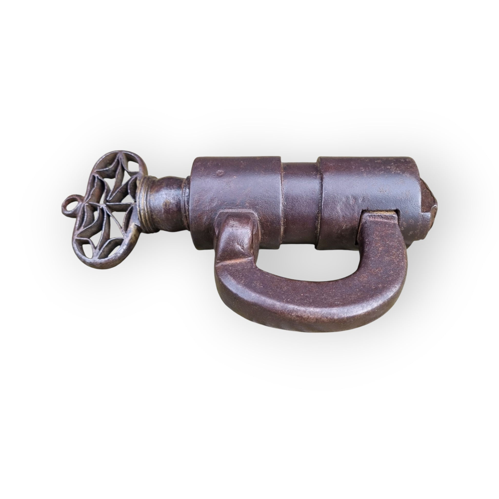 Large 16th-Century Style, 19th-Century Made, Antique Iron Barrel Lock / Padlock