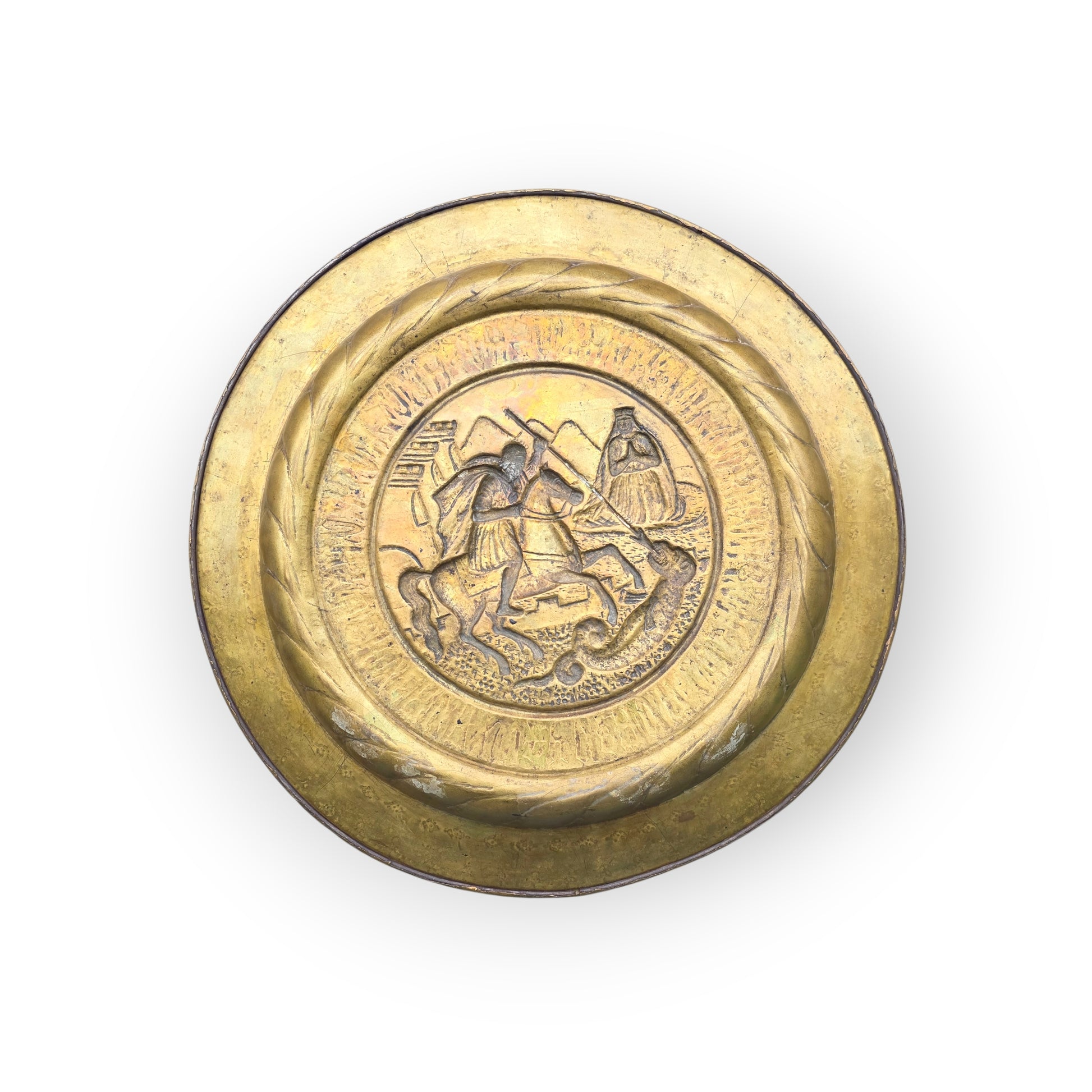 Large 19th‑Century Antique Brass Charger / Alms Dish in the 16th‑Century Style – Saint George Slaying the Dragon
