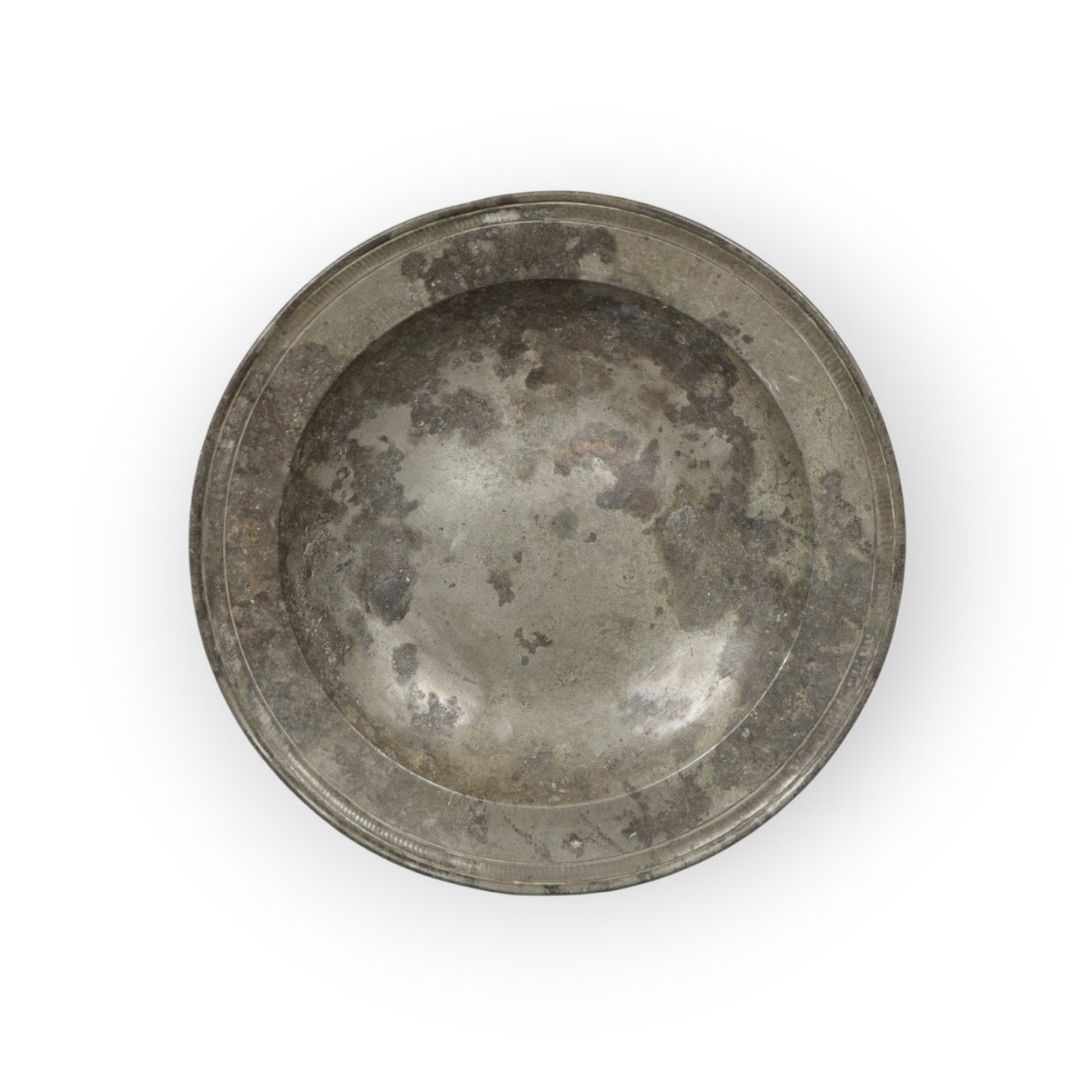 Plates of this period were used daily in prosperous households, often stacked or stored on open dressers where their muted sheen contributed to the visual richness of the room. Surviving examples in honest, undisturbed condition are increasingly scarce, as many were melted down or re‑worked in later centuries. This plate retains its integrity, with no later decoration or intrusive restoration, and displays beautifully either wall‑mounted or laid flat.
