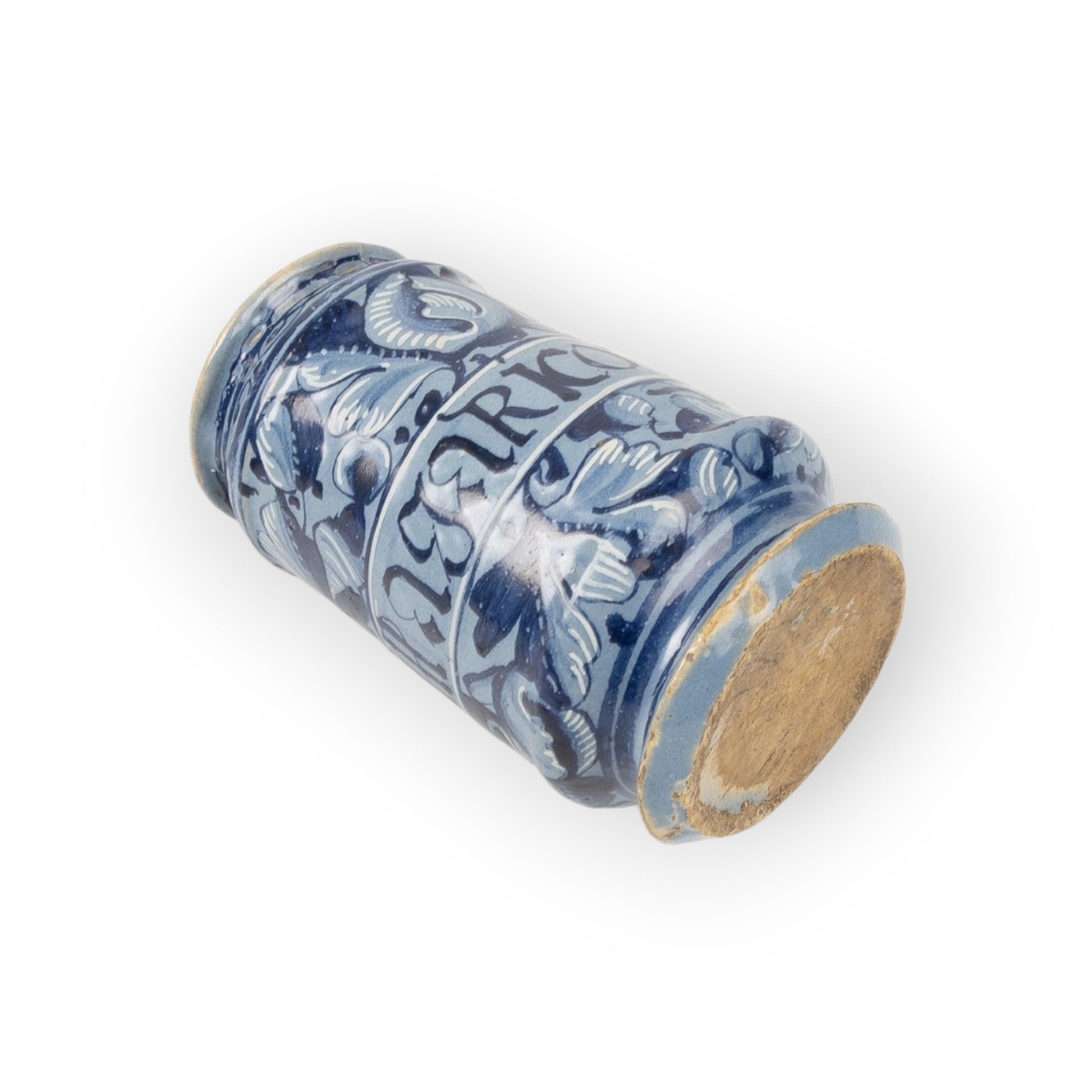 Late 17th‑Century Antique Faience Albarello Apothecary Jar – “PILL: ASARICOTROCSICA"”