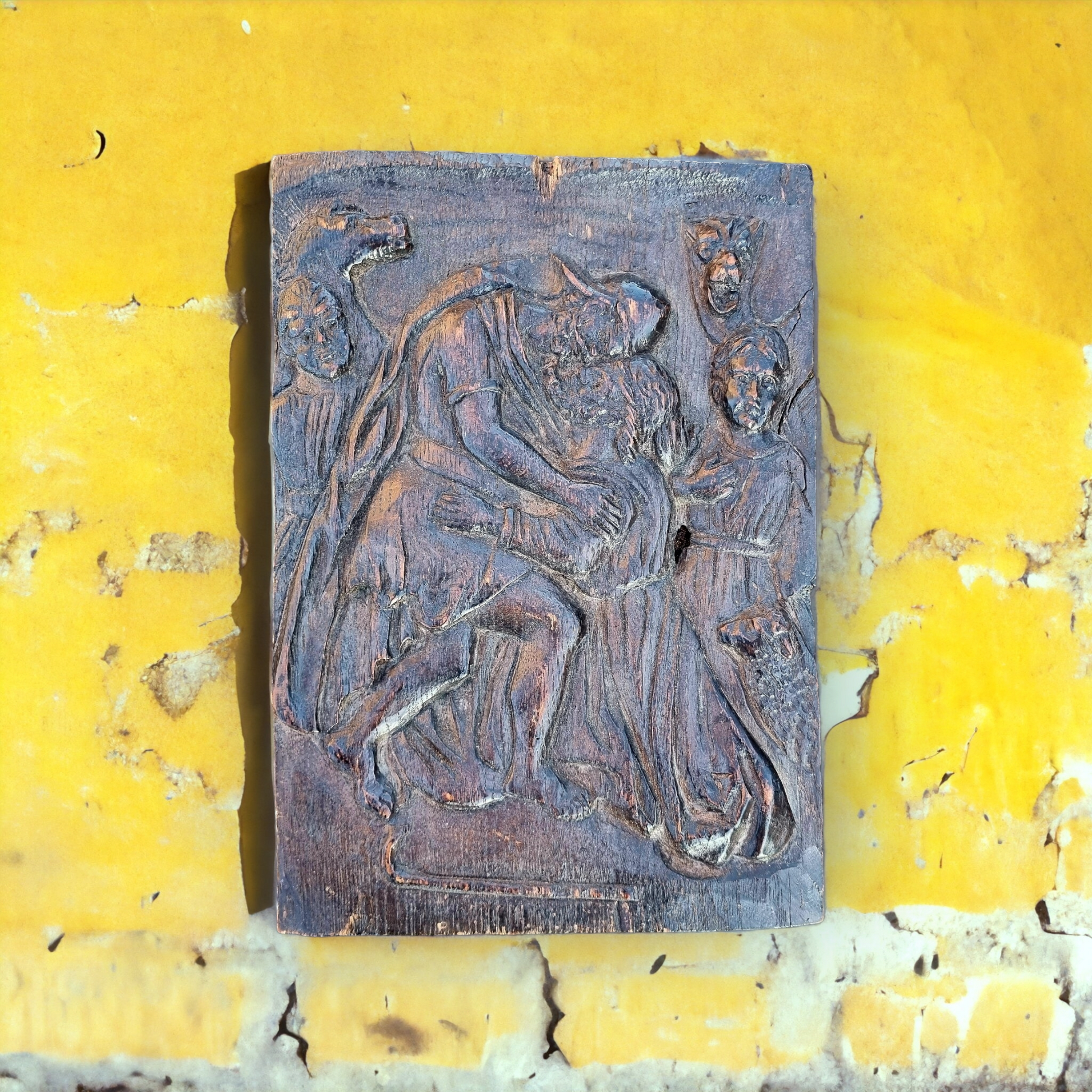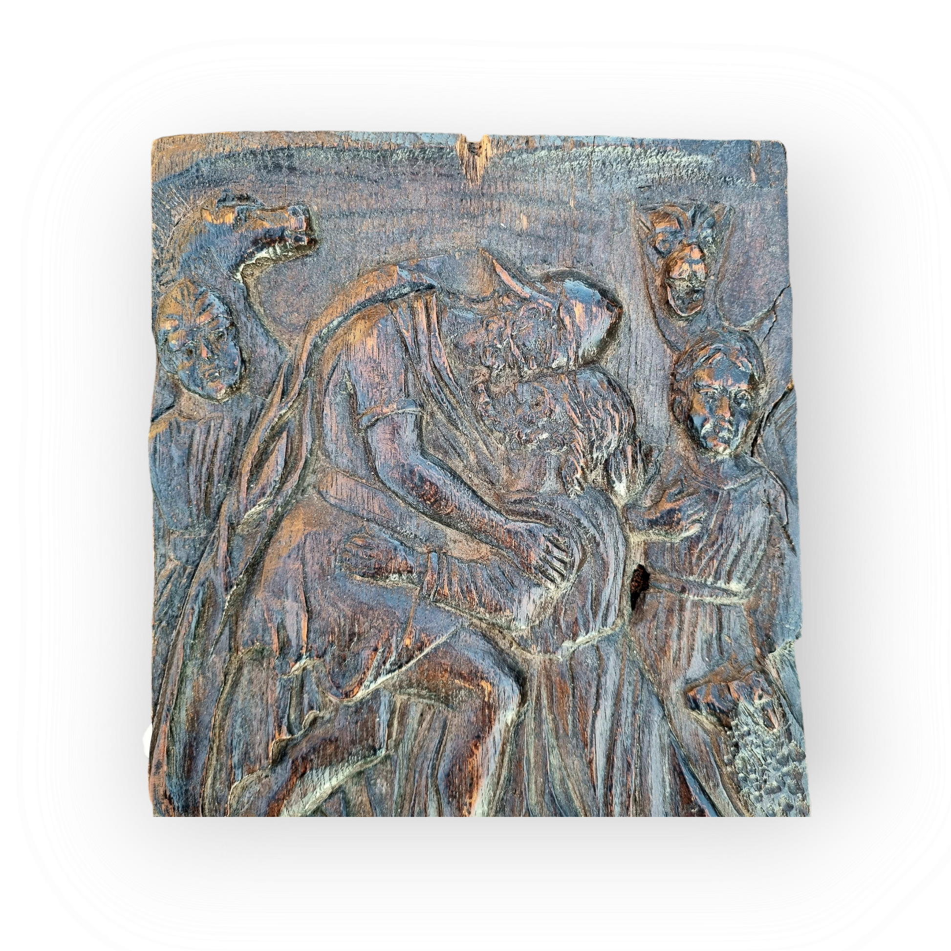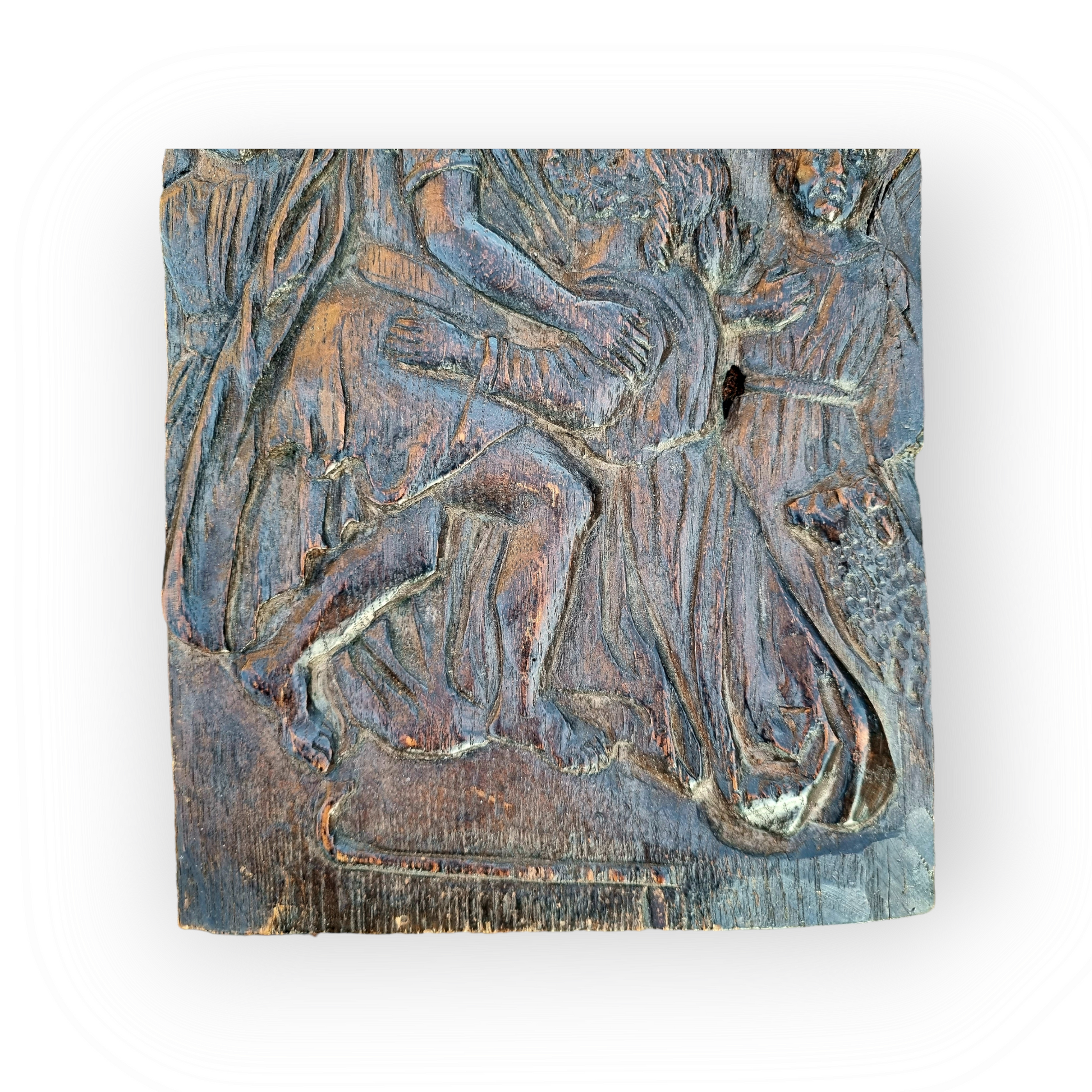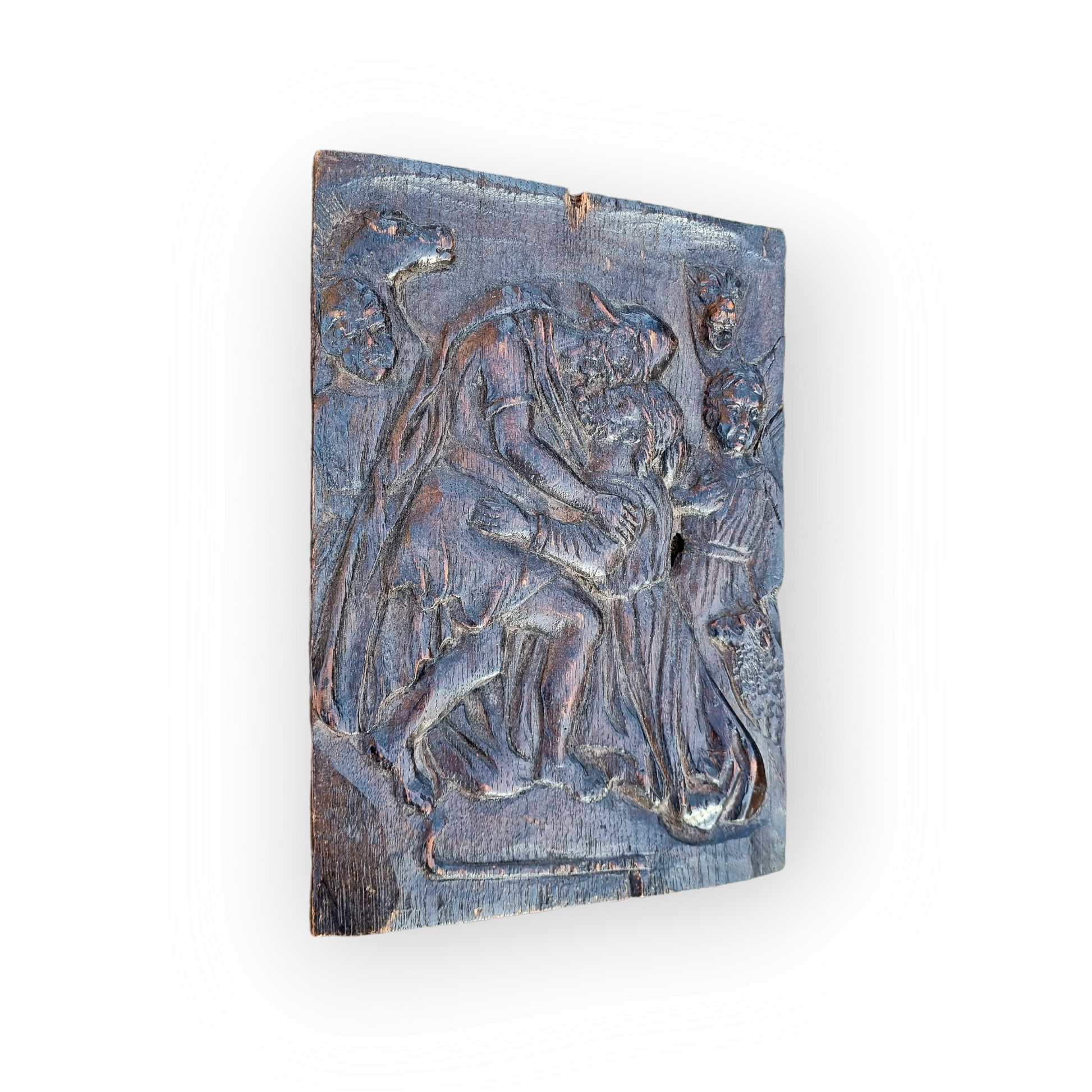 17th Century Flemish Antique Carved Oak Panel, Most Probably Depicting the Betrayal of Jesus in the Garden of Gethsemane by Judas
