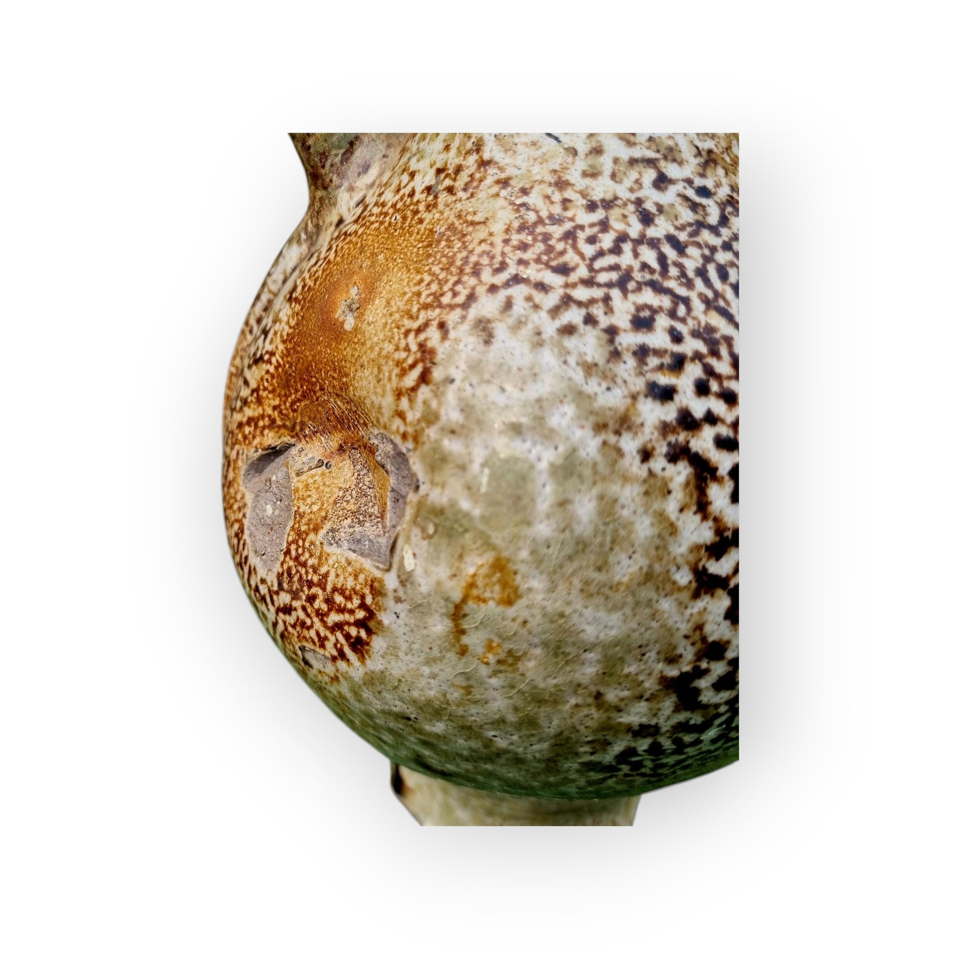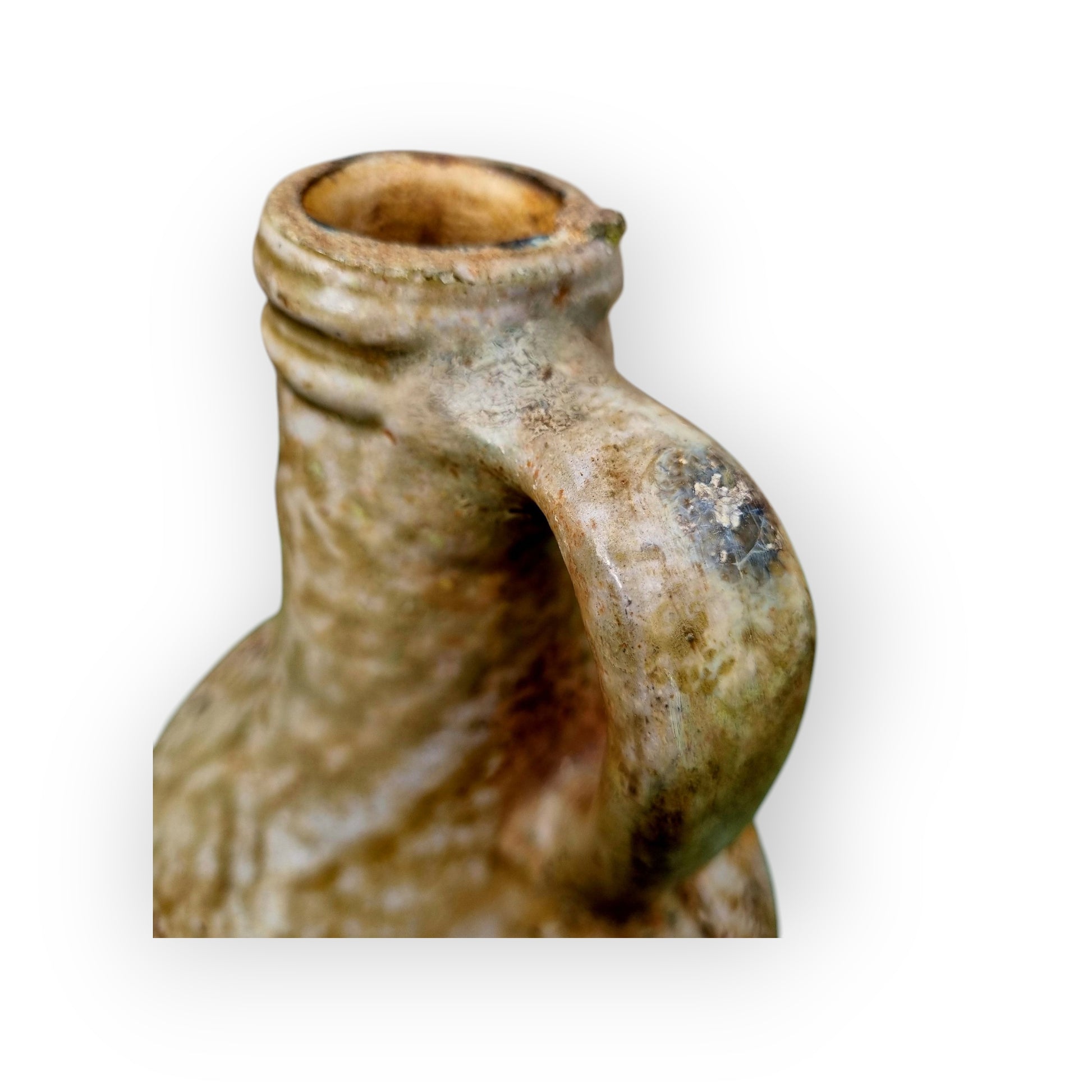 Of baluster-shaped form, the face mask depicted with an elongated beard and a decorative medallion below. The jug has a firing fault where part of the bulbous body sank during the firing process.