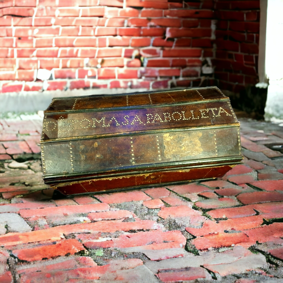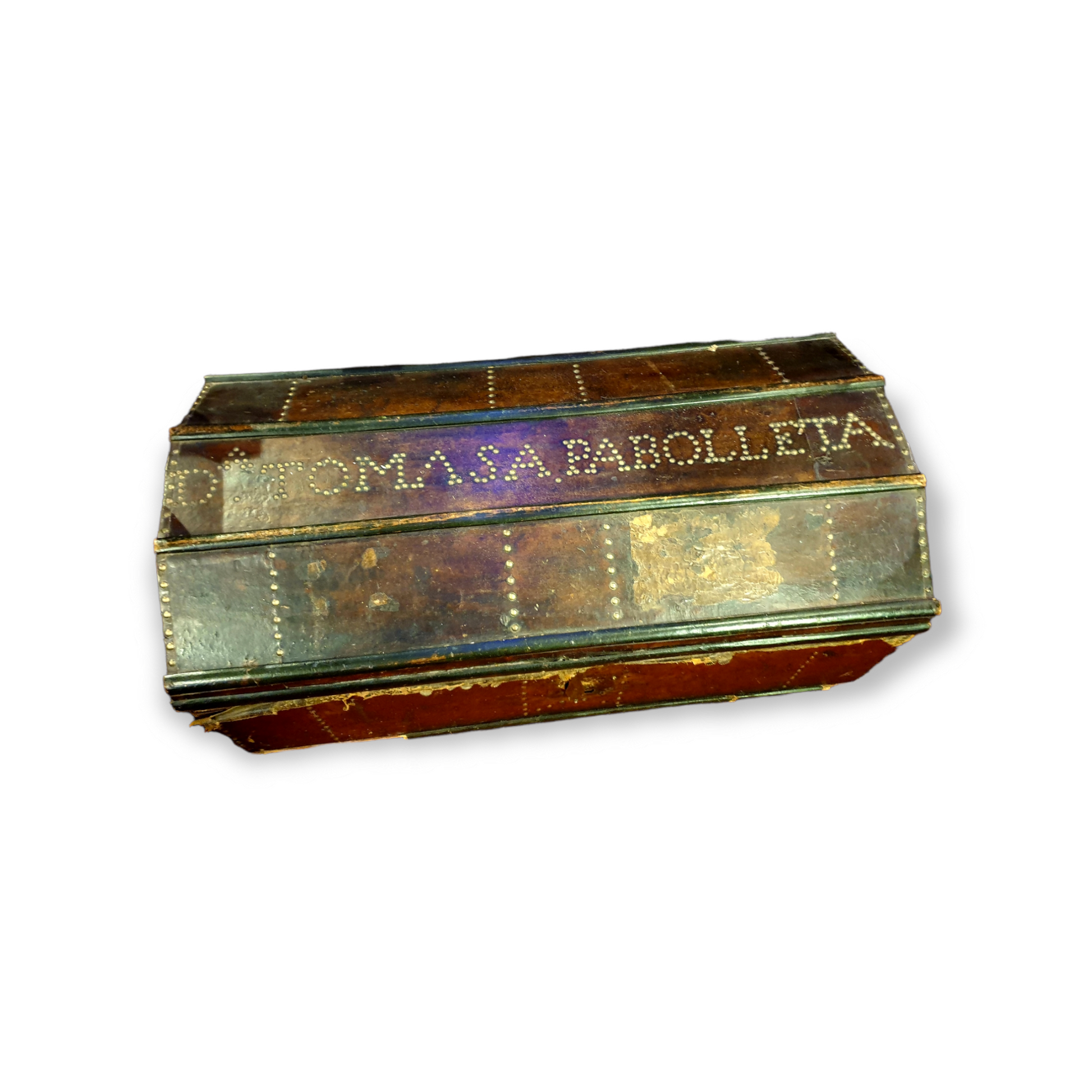 The lid is inscribed with the name of the original owner "D TOMASA PABOLLETA".