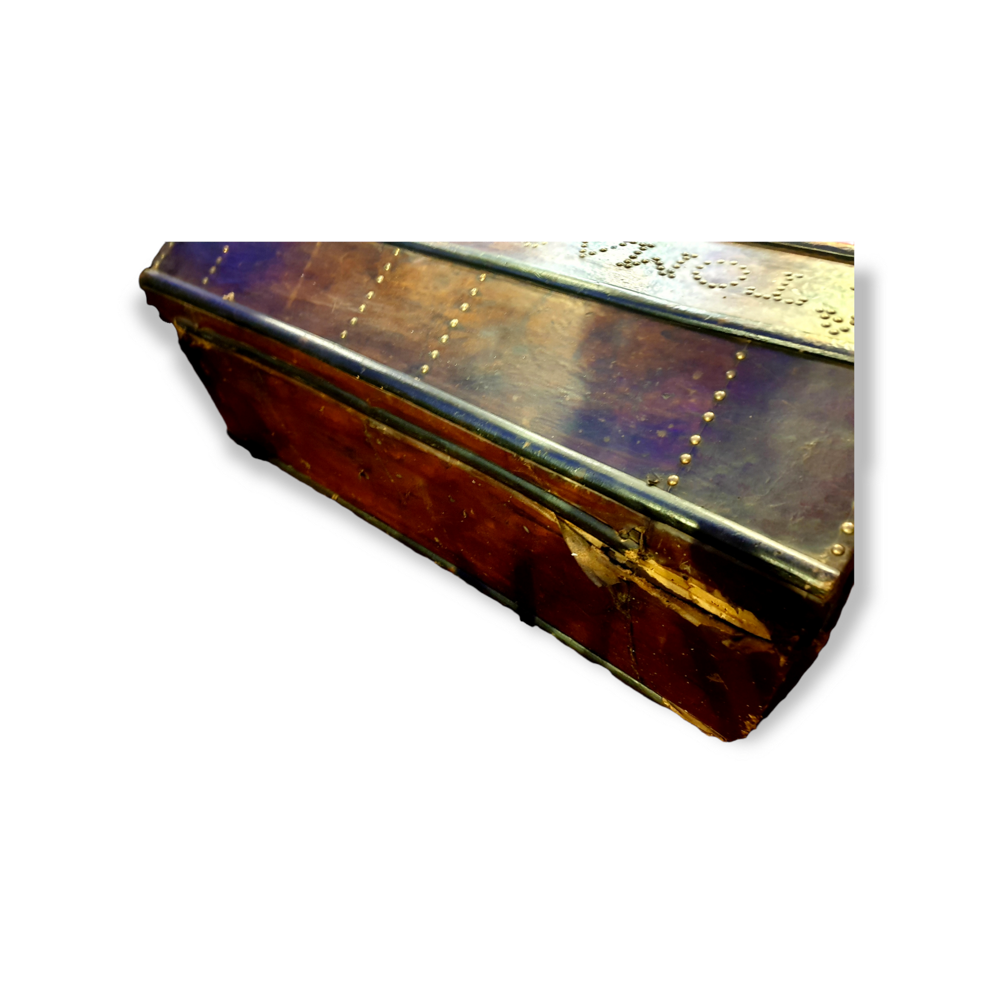 17th Century Spanish Antique Leather-Bound Travelling Trunk or Chest