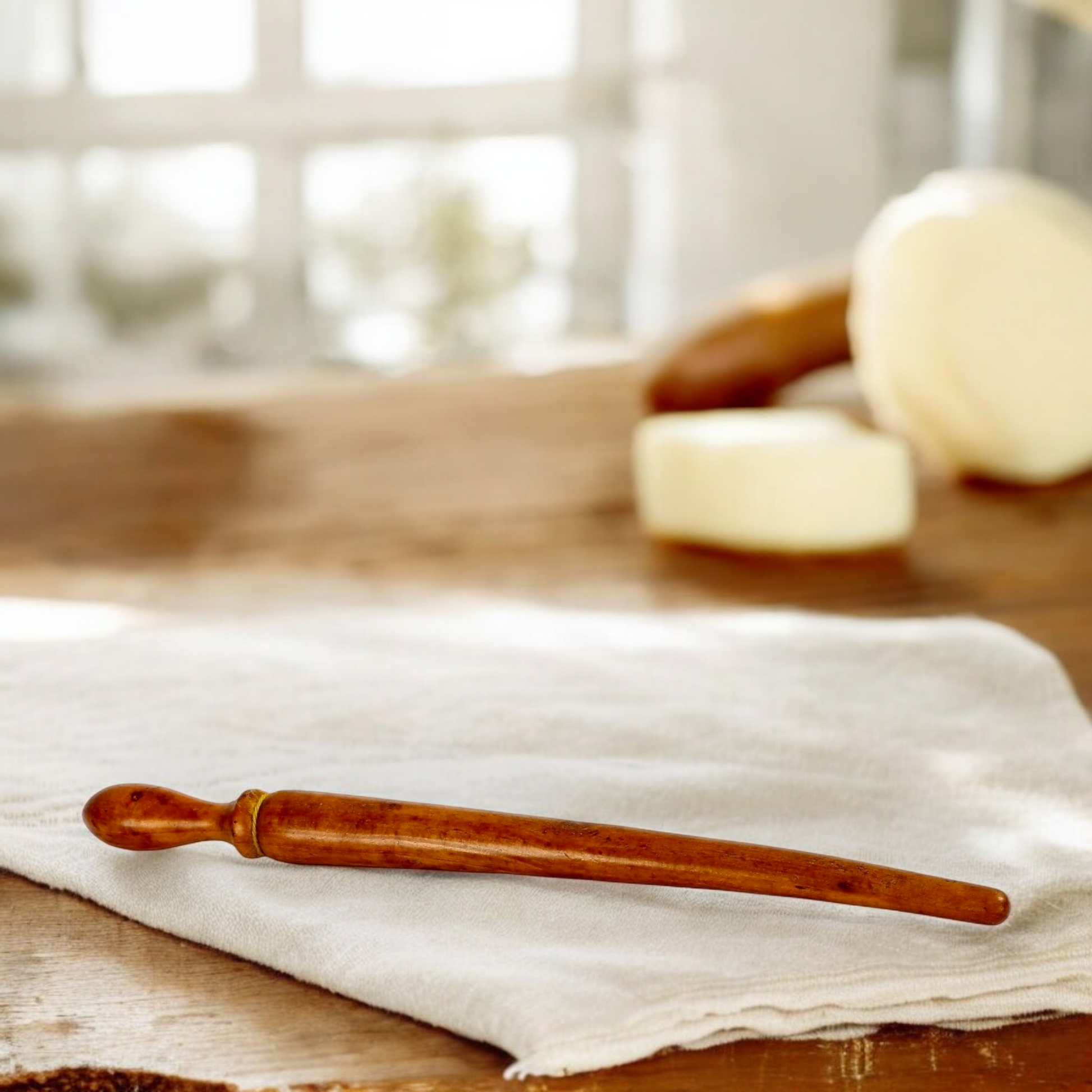 18th Century English Antique Fruitwood / Treen Lard 'Skewer' With Baluster-Shaped Handle