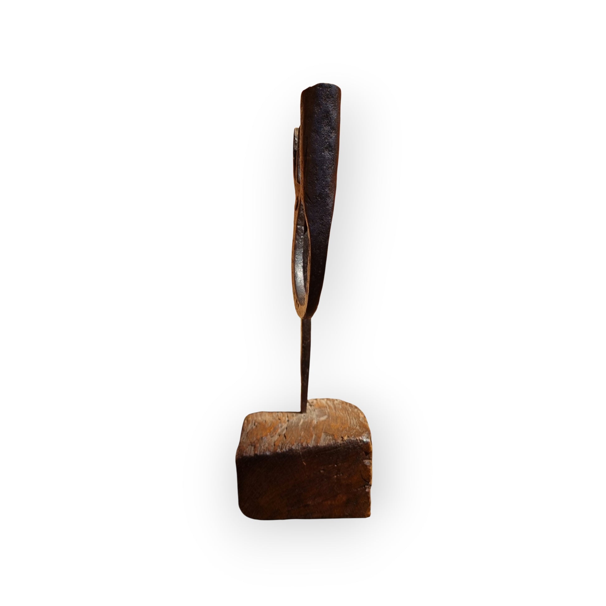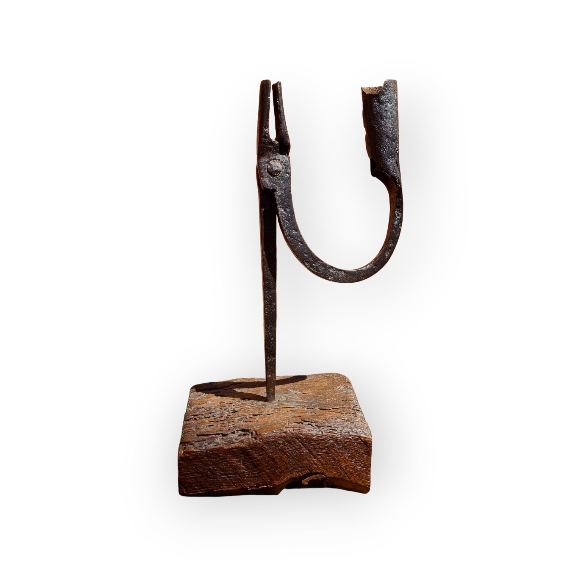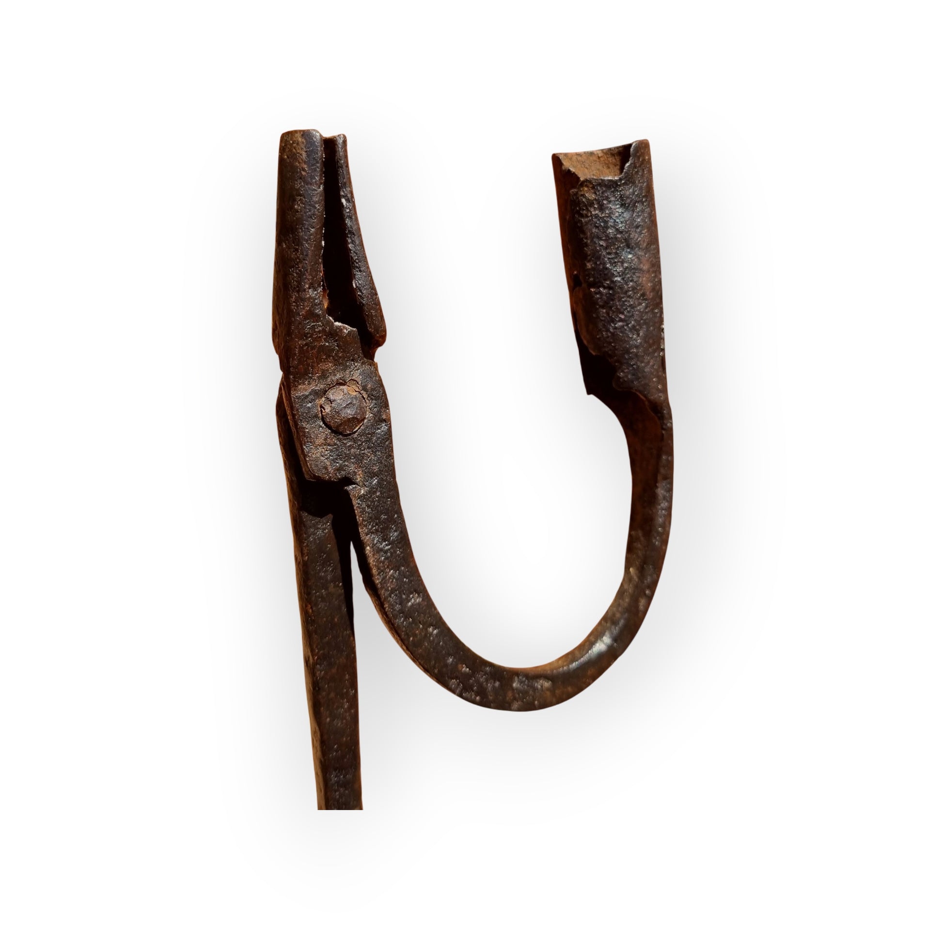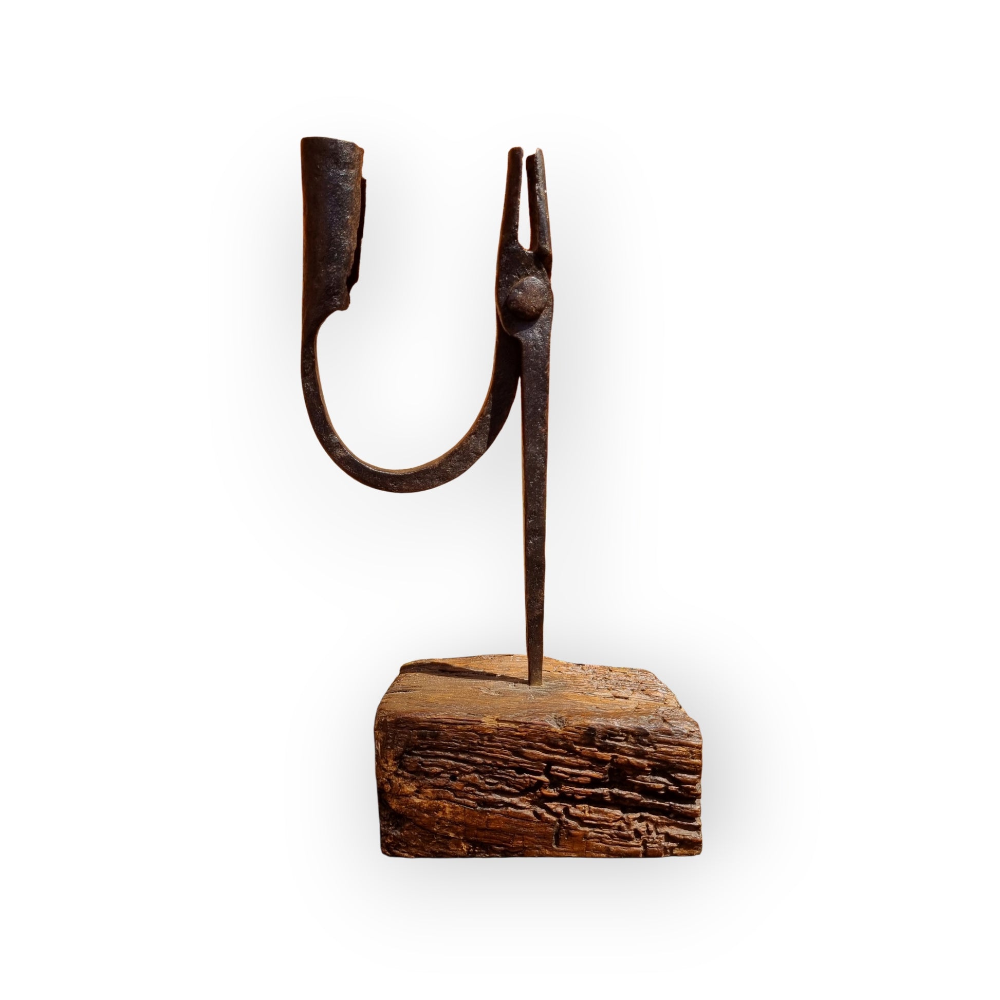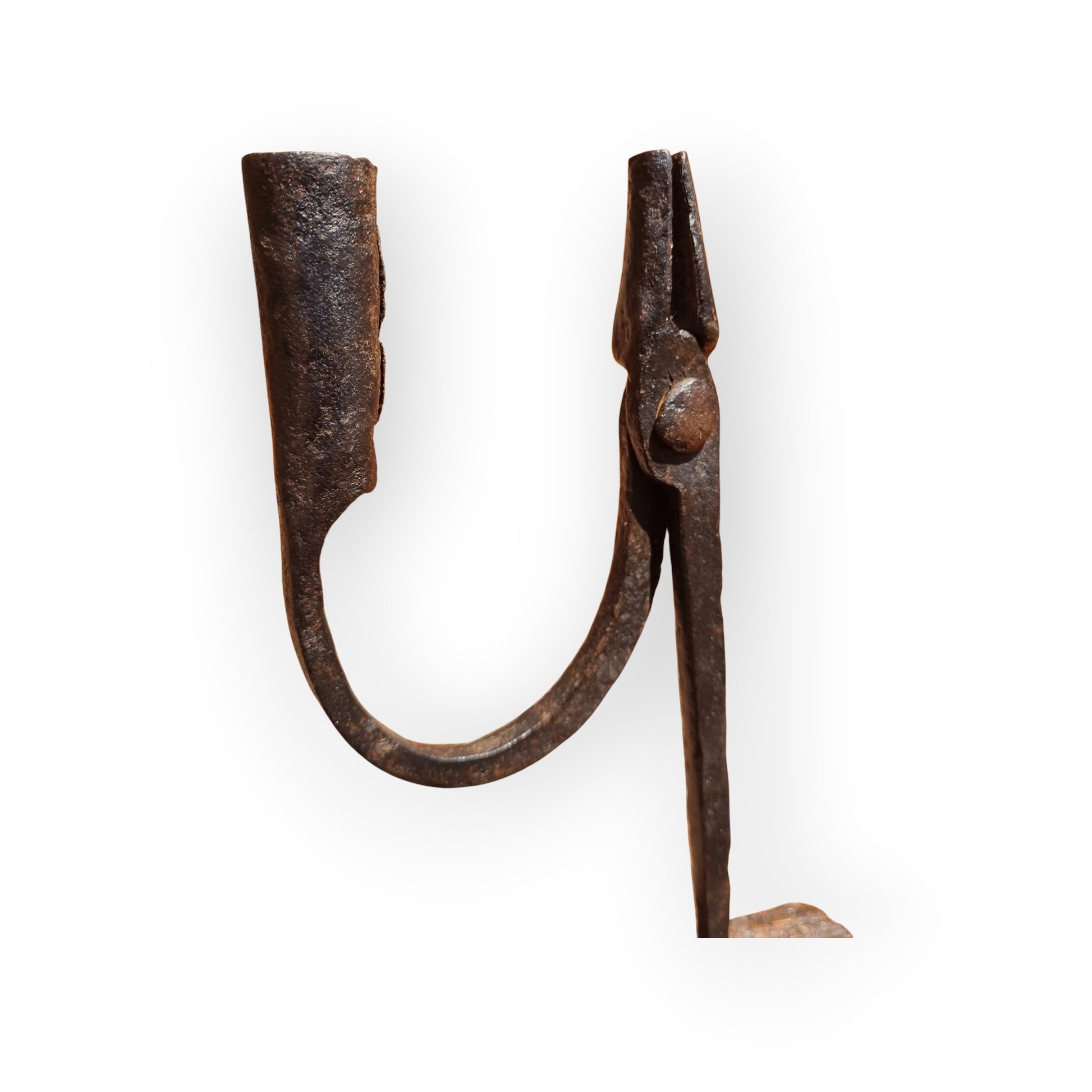 Forged by hand with characteristic simplicity and functional elegance, the rushlight embodies rural domestic life in pre-industrial England. Its surface shows age-worn patina and traces of use, with a sculptural silhouette that speaks to its utilitarian origins.
