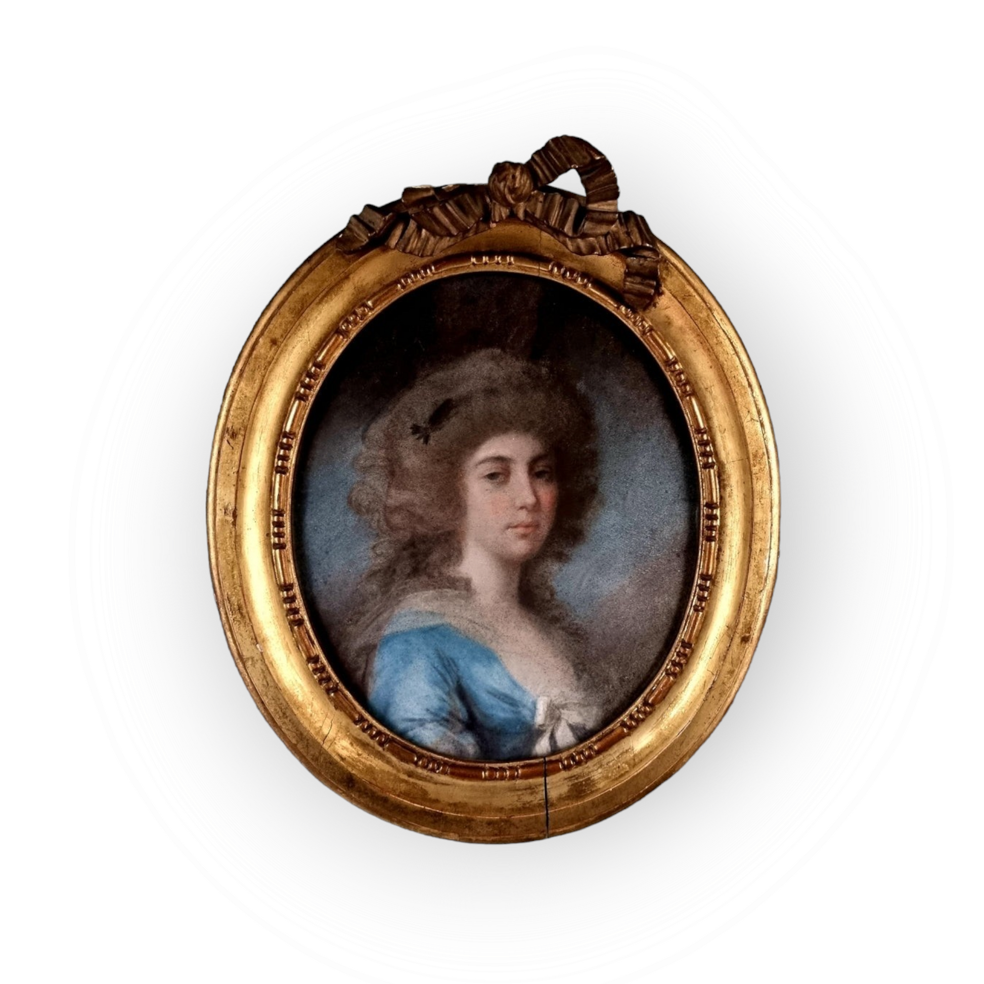 Condition - Please refer to the images. There is very minor foxing to the surface to the right of the portrait. The 18th Century frame does have an age-related loss to the decorative bow at the top of the frame and there is a split at the bottom however this is stable and does not detract from the portrait which still displays very well. A further detailed condition report is available upon request.