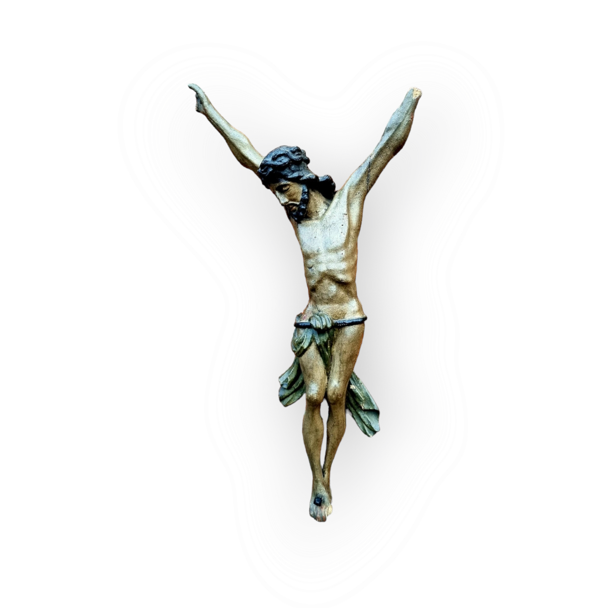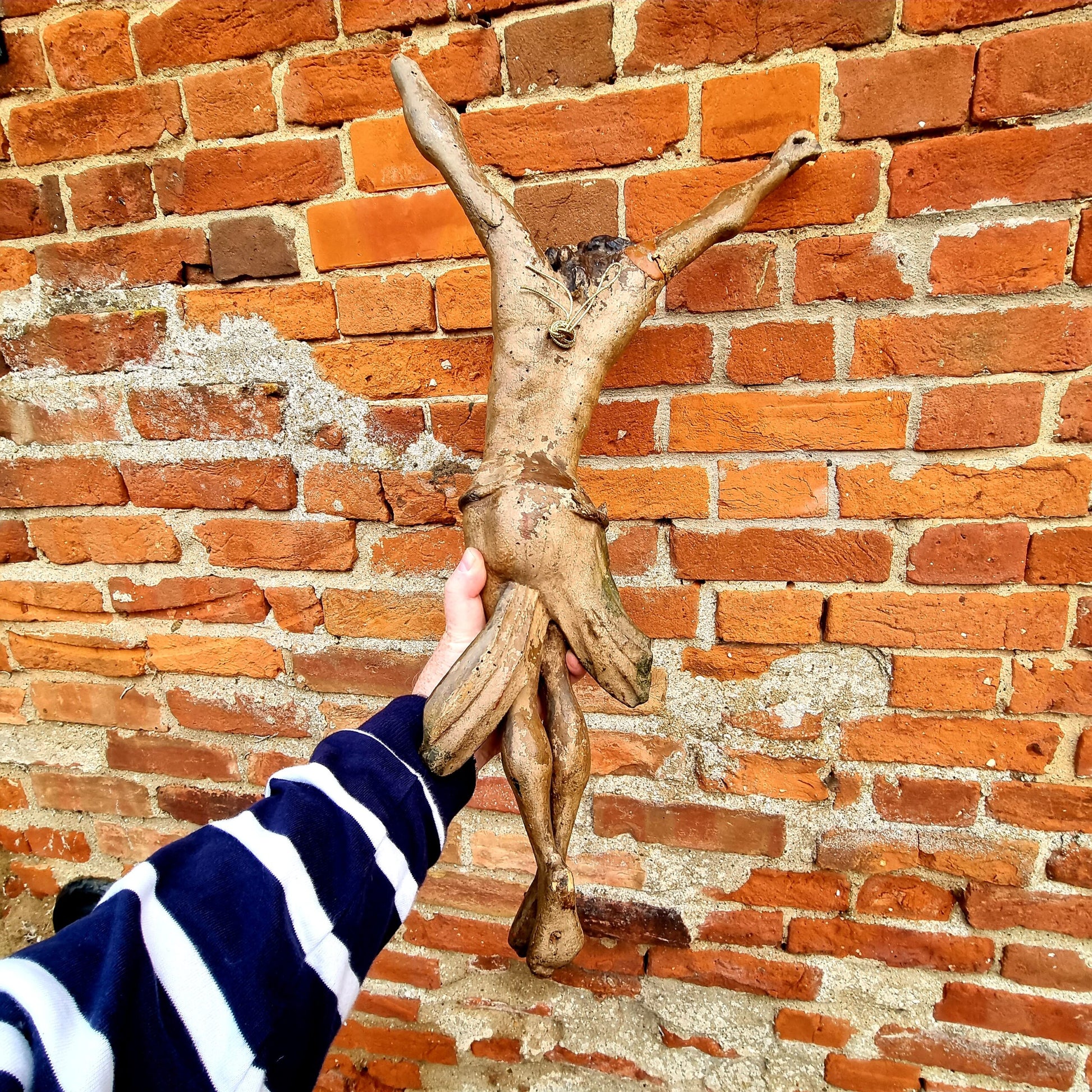 Condition - The right arm has been reattached where it meets the shoulder joint and a number of his fingers are missing from his right hand. His left hand is missing from the wrist. There has been some historic worm to the torso (treated and long since gone). A further detailed condition report can be provided upon request.