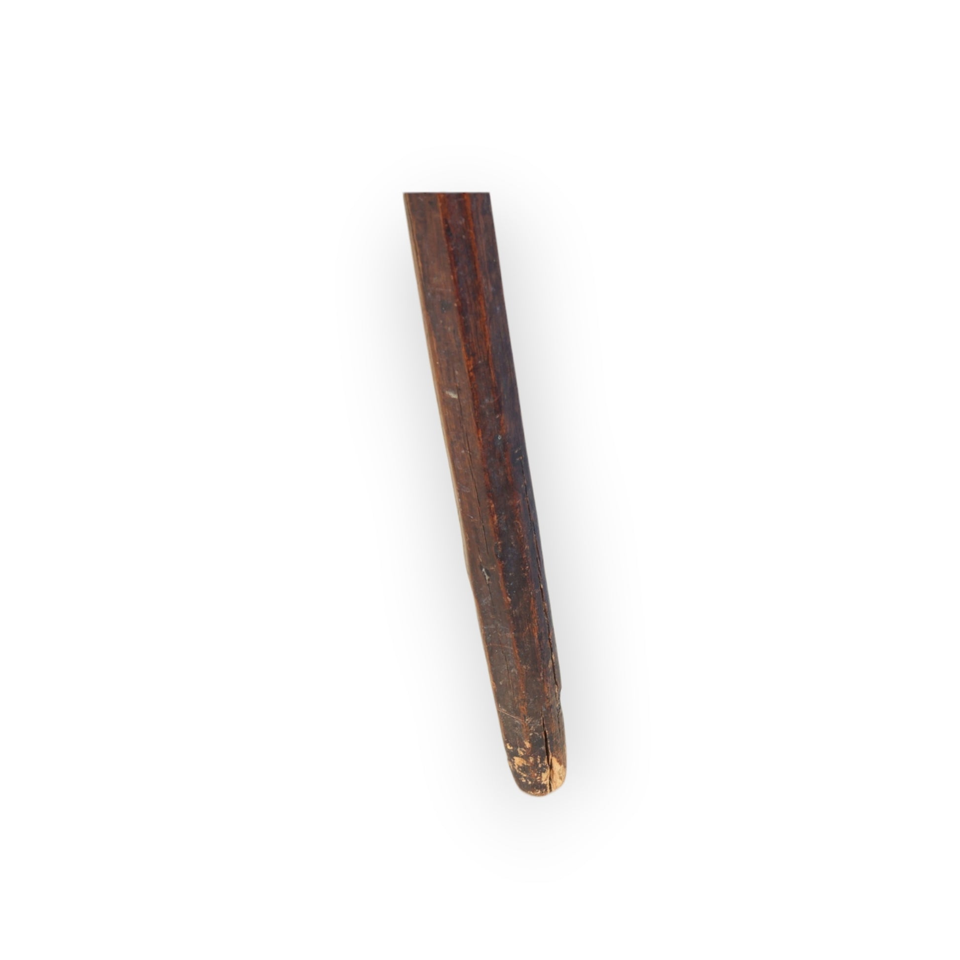 A wonderfully honest 18th‑century Welsh primitive stick chair, displaying all the hallmarks of early rural craftsmanship. The chair features a carved curved top rail, decorated at each handrest with punch-work "nulled" decoration, shaped spindles , and an angular elm seat, all raised on splayed stick legs — a classic regional form that predates the later, more standardised Windsor traditions.