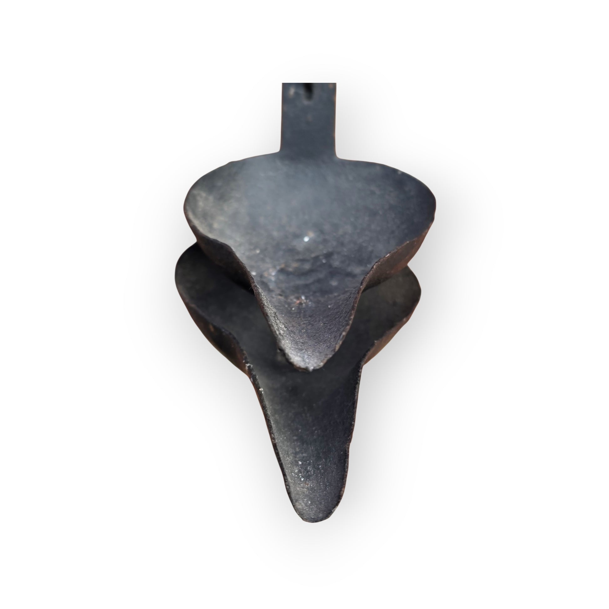 18th-Century Scottish Antique Double-Valve "Ramshead" Wrought Iron Cruisie Lamp