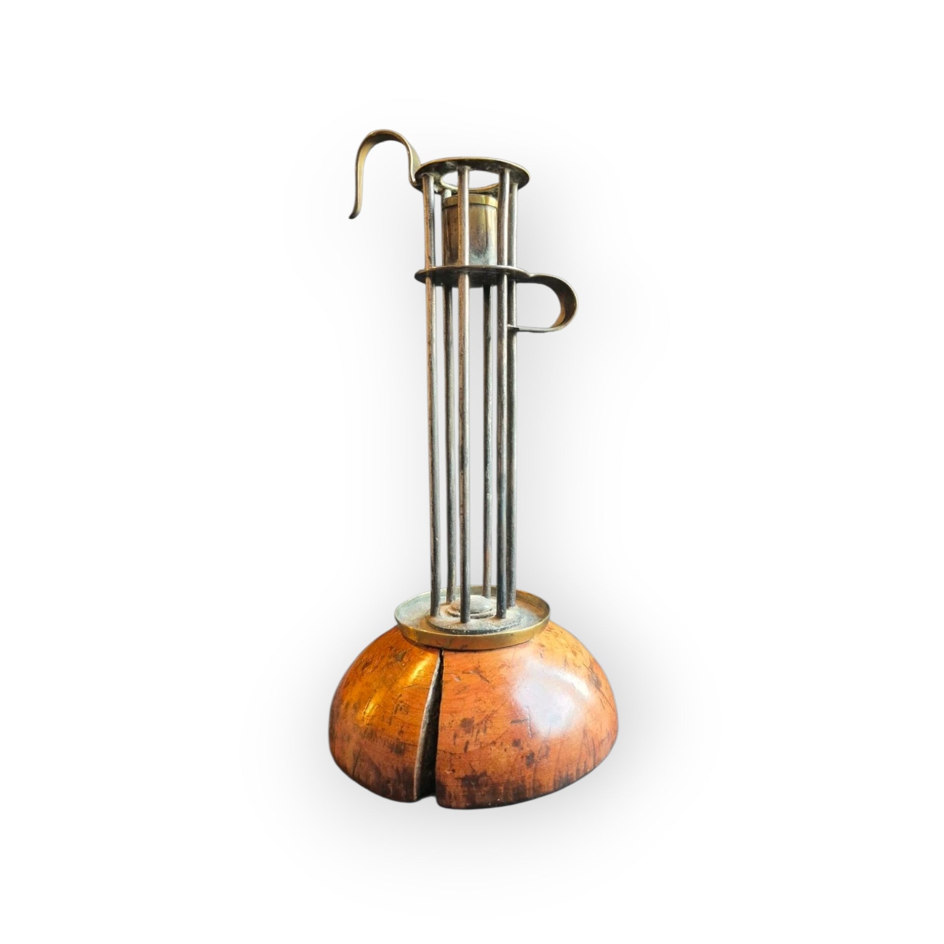 18th Century Adjustable Brass Birdcage Candleholder on Domed Pearwood Base