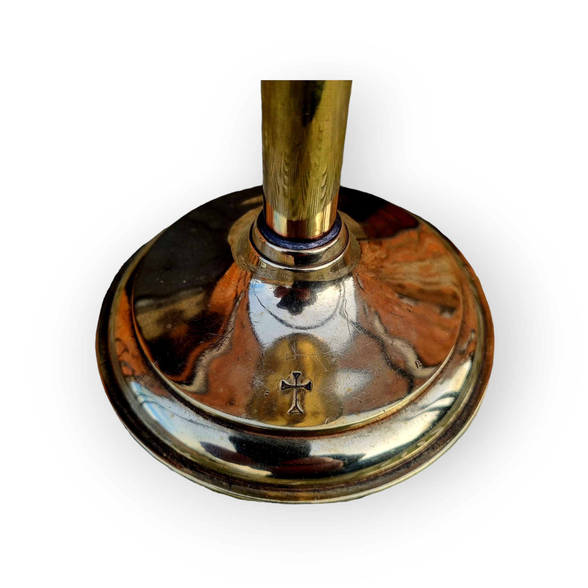 The base bears an engraving of The Holy Cross.