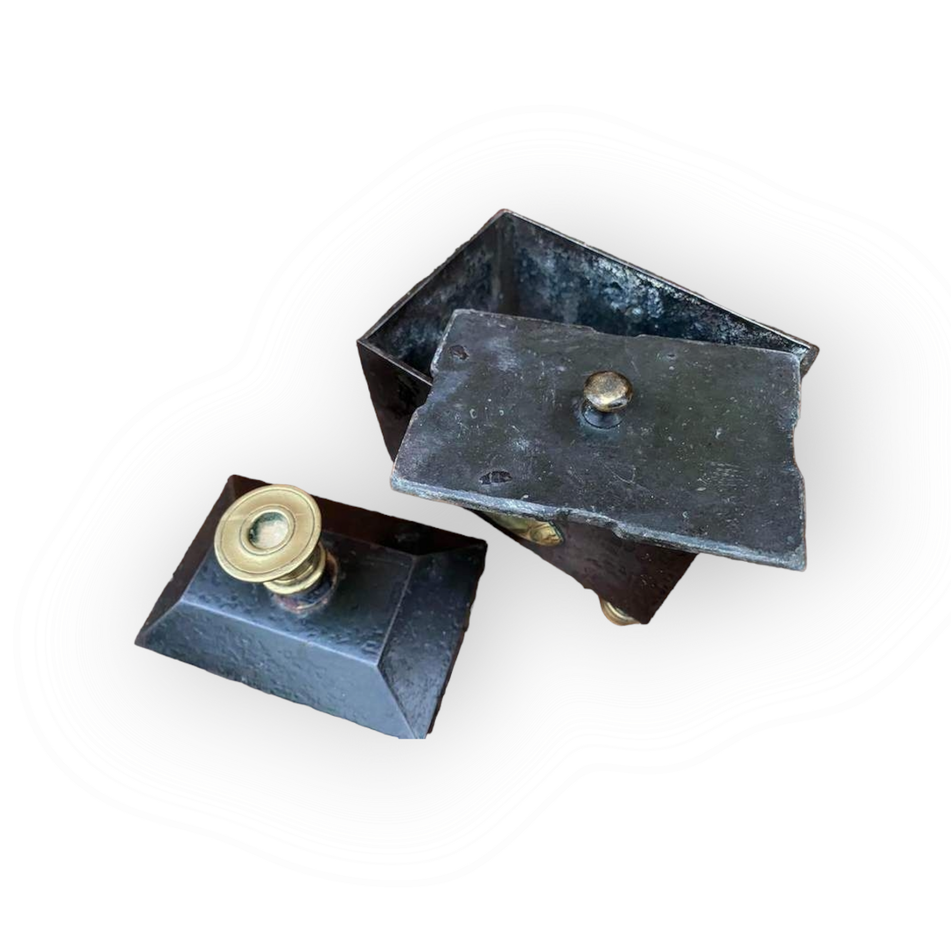 Size: Height 14cm (including brass candle sconce) x width 11cm x depth 7cm (5 1/2" x 4 1/3" x 2 3/4")