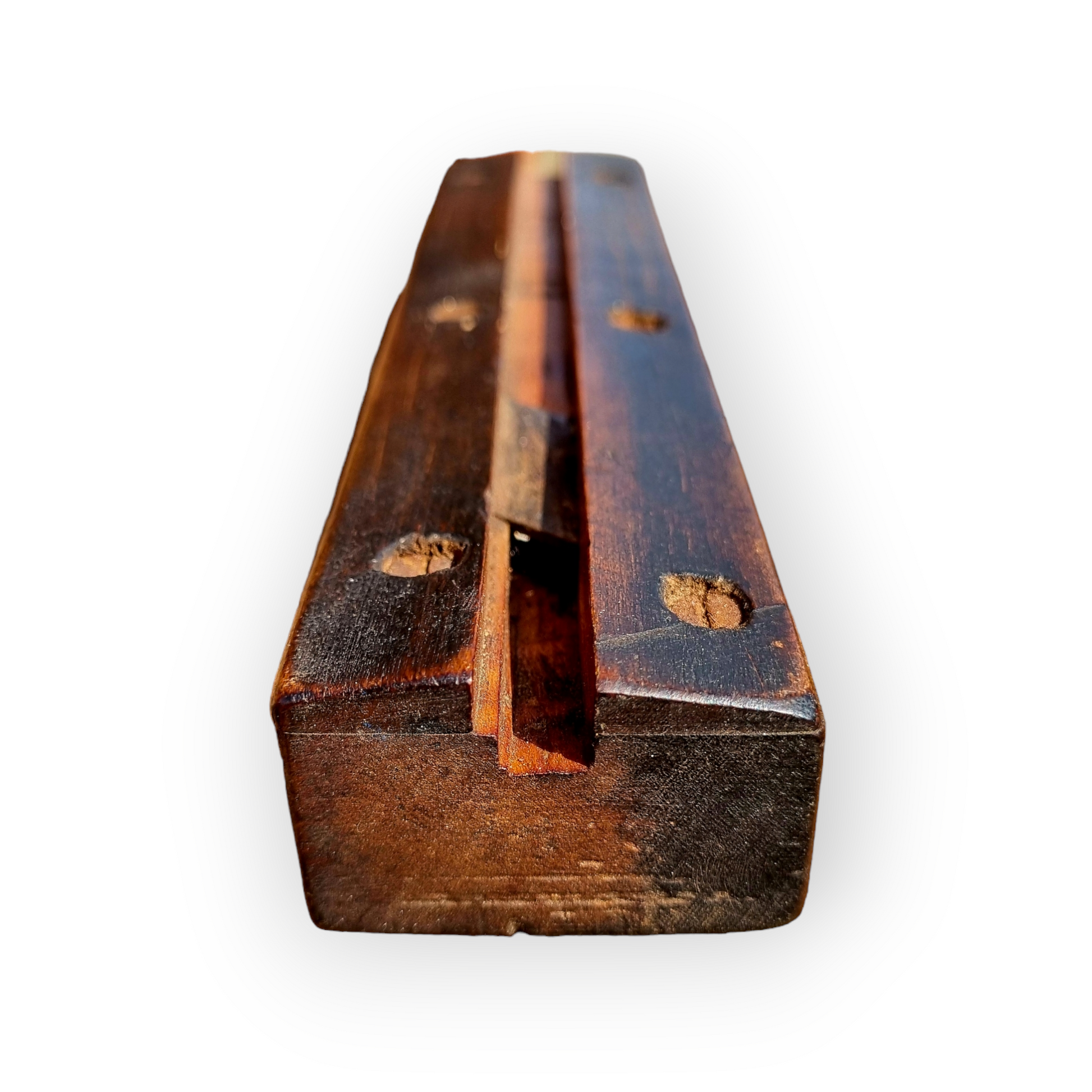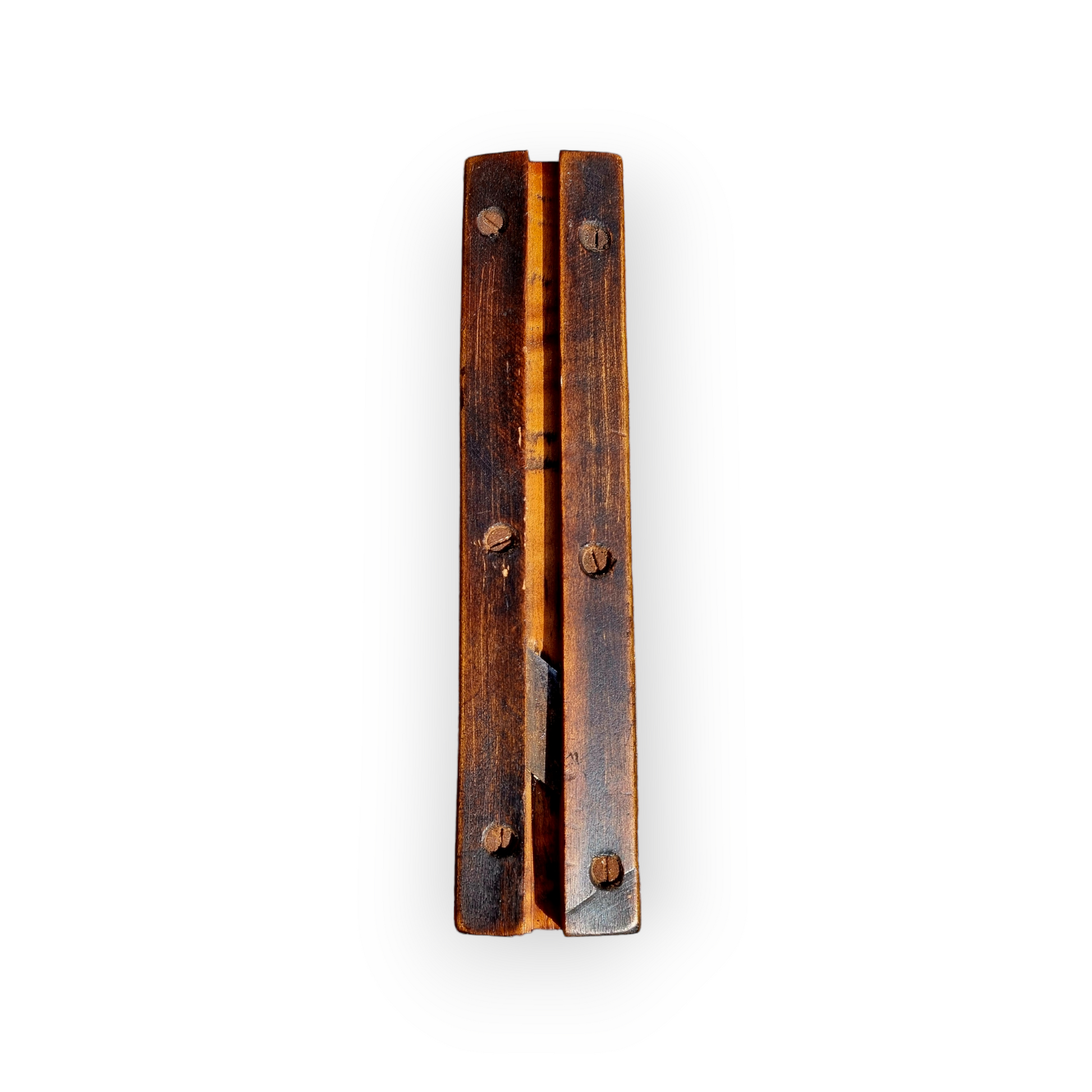 An antique treen willow splitter of elongated form with a single blade.