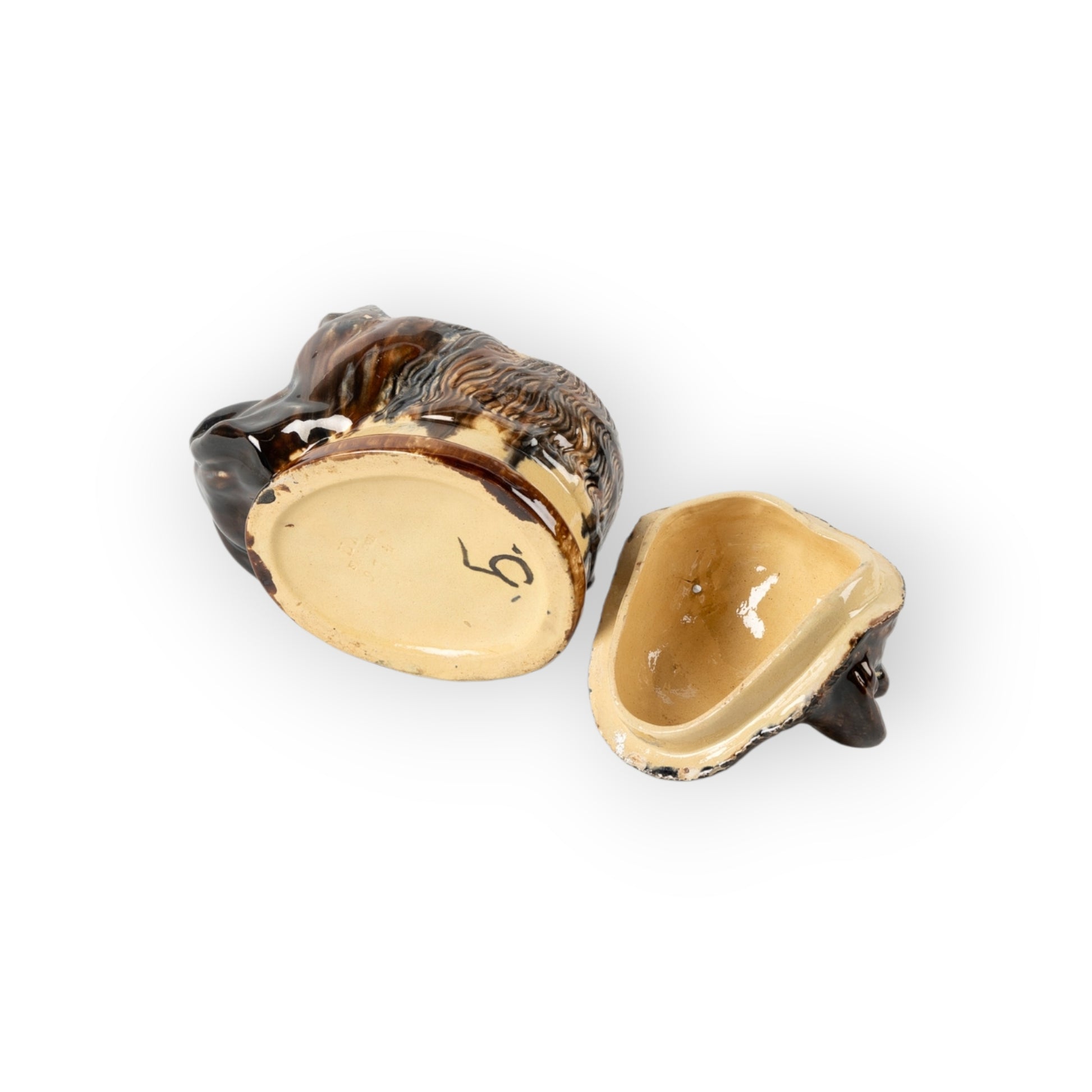 Large, Late 19th‑Century Antique Höganäs Pottery Majolica Tobacco Jar in the Form of a Bulldog’s Head